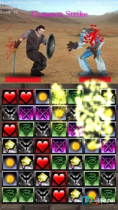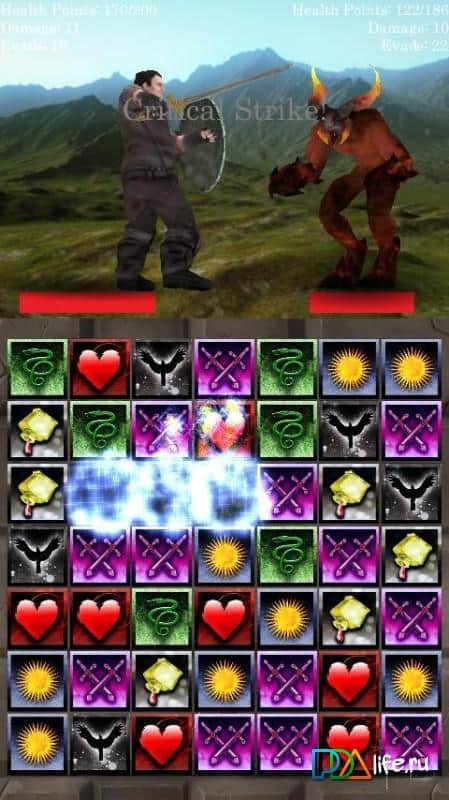 Match 3 RPG: Evil Hunter - Неплохая андроид головоломка по типу три в ряд, которая отличается наличием РПГ элементов. По ходу прохождения уровней, ваш герой будет и участвовать в интересных историях, сражаться с врагами и улучшать свои навыки и способности. Ход боев напрямую зависит от того, как вы будите играть на поле в игре три в ряд. Чем удачней ваши комбинации, тем лучше будет проходить в бой с вашей стороны.