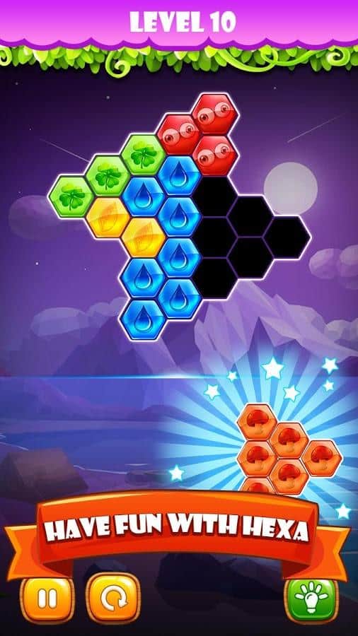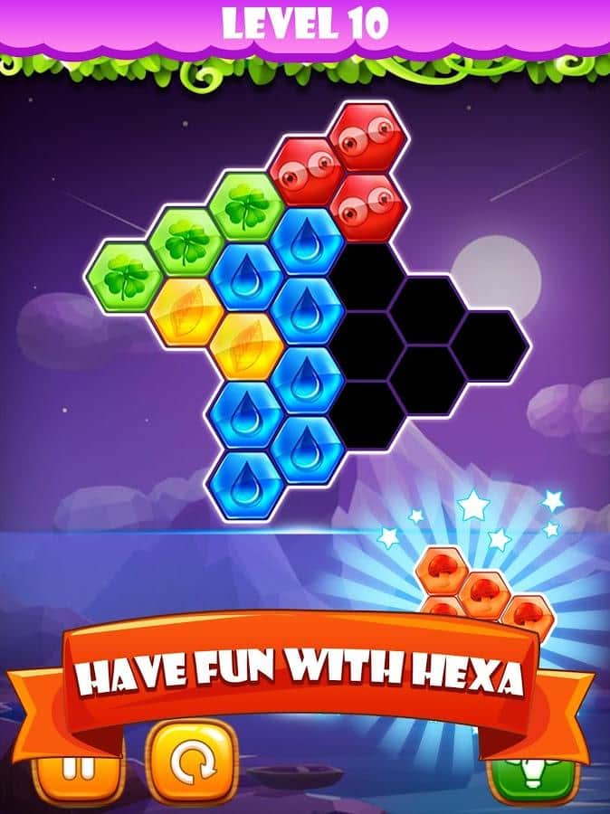Match Block: Hexa Puzzle – увлекательная игра на андроид, где вы будете расставлять на игровом поле фигурки. В этой игре перед вами откроется поле, состоящее из шестиугольных блоков в нижней части экрана находятся фигуры, имеющие разный цвет и размер. Вашей задачей будет разместить на поле все фигуры и занять все свободное время. Играйте в игру в любое свободное время и наслаждайтесь увлекательным игровым процессом. Тщательно продумывайте каждый свой шаг, ведь в этой игре нет ограничений по времени. В игре вы встретите более 240 уровней, забавного персонажа и простое управление.