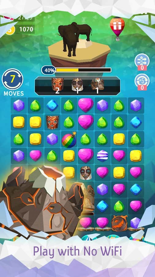 MATCH EARTH - Age of Jewels – головоломка на андроид, где вы будете путешествовать по разным уголкам планеты и составлять ряды из трех и более драгоценных камней. Составляйте одинаковые по цвету камни в ряды и украшайте и улучшайте мир вокруг себя. Выполняйте многочисленные миссии и задания по сбору самоцветов и получайте в качестве награды бонусы и усиления. В этой игре вам выпадет уникальная возможность воздать целую планету из различных фрагментов. Составляйте по три и более цепочек из камней и проделывайте комбо удары, которые позволят вам быстрее выполнить задание.