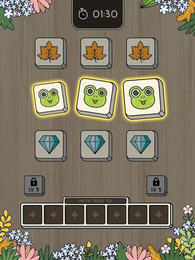 Match Triple Tile - За ограниченное время вам предстоит соединить одинаковые плитки, чтобы пройти все уровни и двинуться дальше. Самое главное правило игры — выбрать именно 3 плитки, иначе ход не будет засчитан и вы потеряете драгоценное время. Получайте необходимые очки с помощью собственной скорости, с какой вы сможете добиться желаемых результатов еще быстрее. Таким образом, благодаря усилиям, приложенным в игре, вы прокачаете работу своего мозга, научитесь ловко решать даже сложные задачи, а также интересно проведете свободное время.