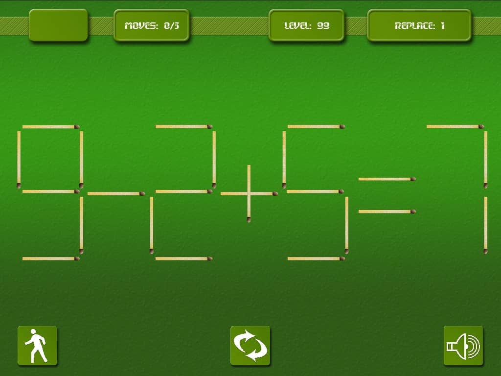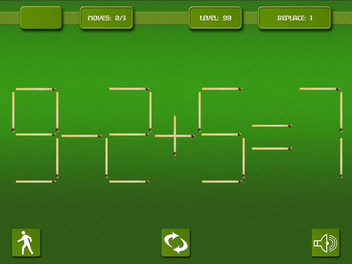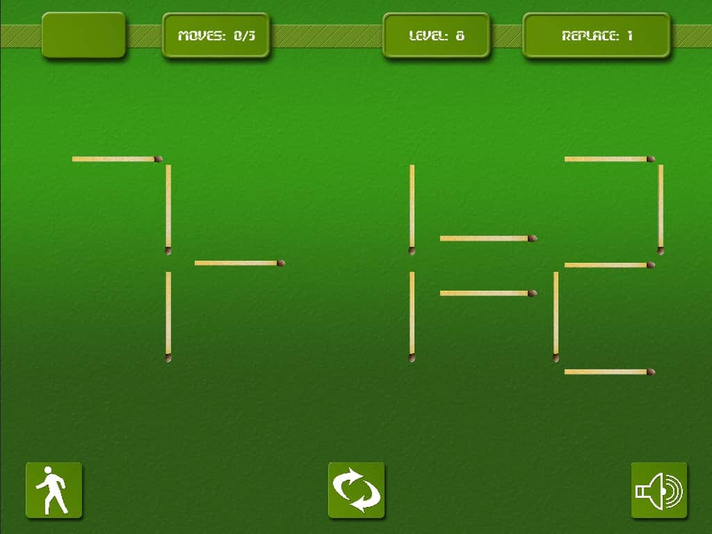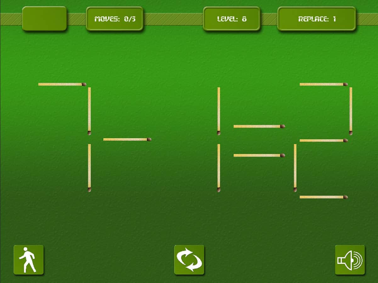 Matches - игра головоломка на андроид, которая проверит вашу реакцию и умственные способности. Эта игра многим знакома со школьных лет, где необходимо было перекладывать спички и получать правильное решение для примера. Вам дается ограниченное количество спичек и времени, складывайте и перемещайте их так, чтобы в итоге получилось правильное решение и пример оказался верным.