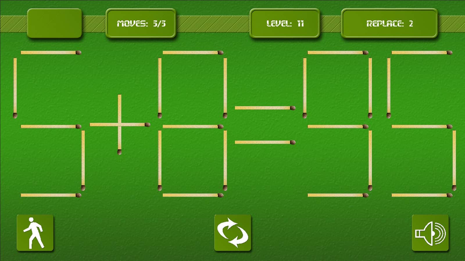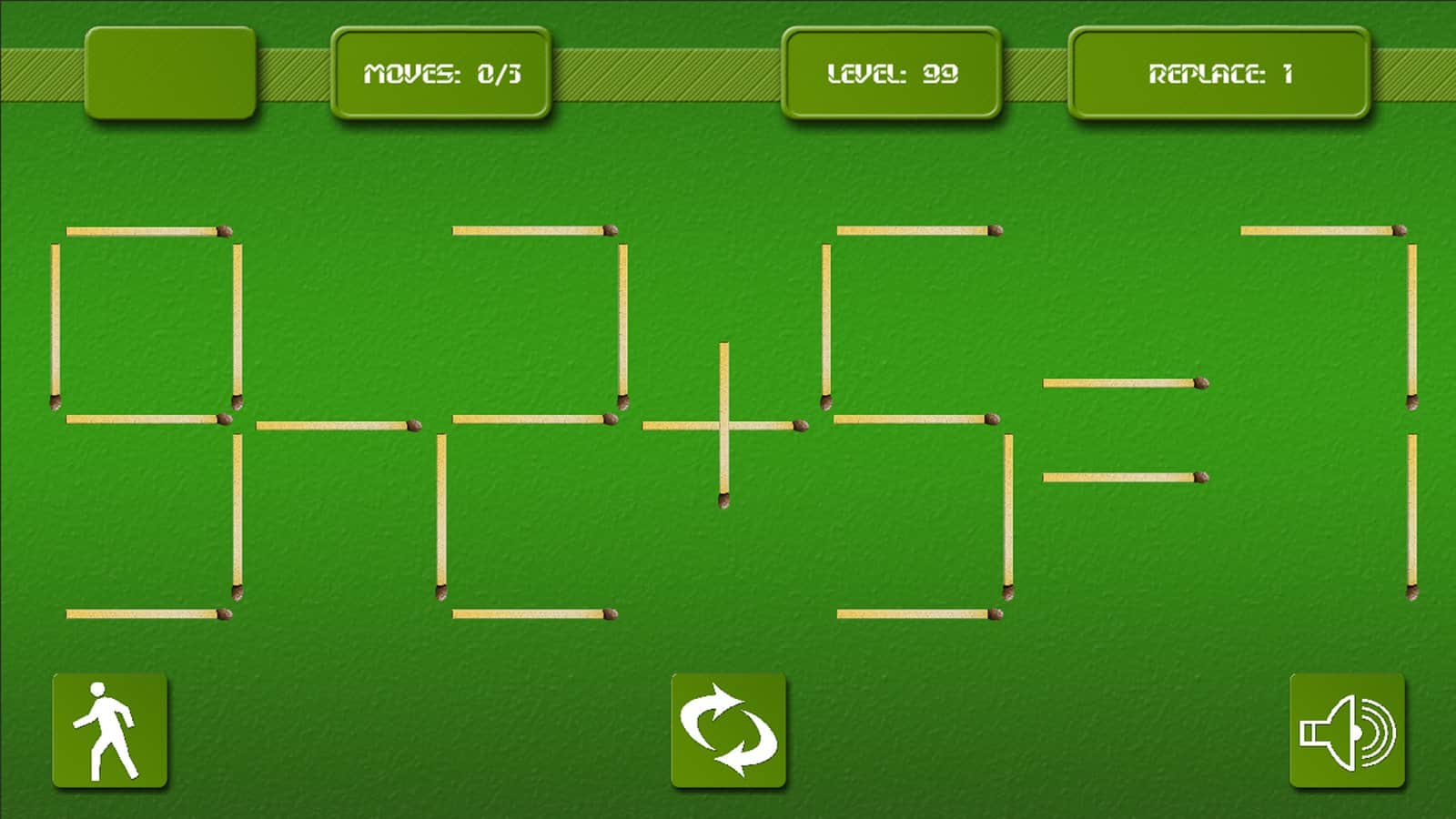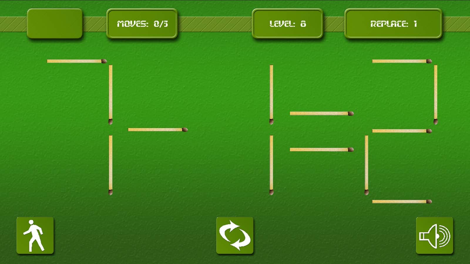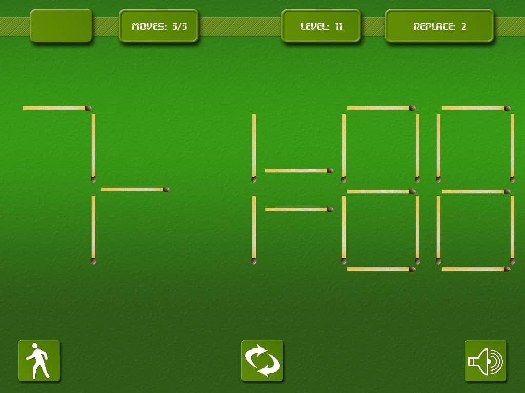 Matches - игра головоломка на андроид, которая проверит вашу реакцию и умственные способности. Эта игра многим знакома со школьных лет, где необходимо было перекладывать спички и получать правильное решение для примера. Вам дается ограниченное количество спичек и времени, складывайте и перемещайте их так, чтобы в итоге получилось правильное решение и пример оказался верным.