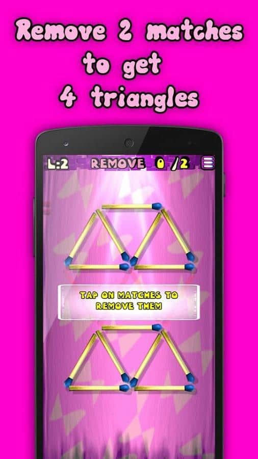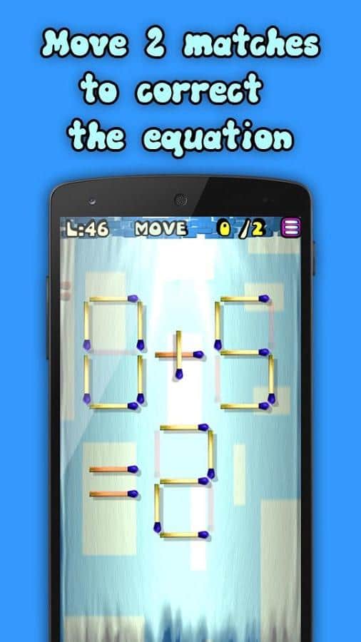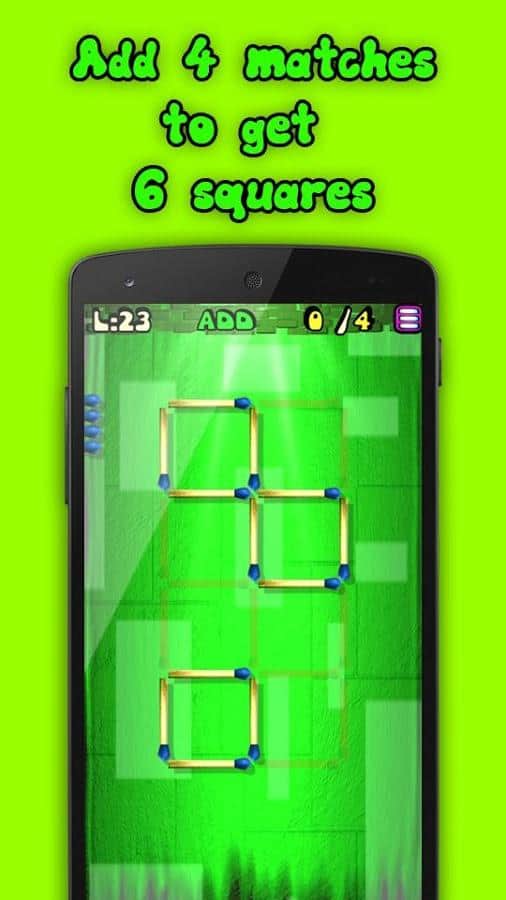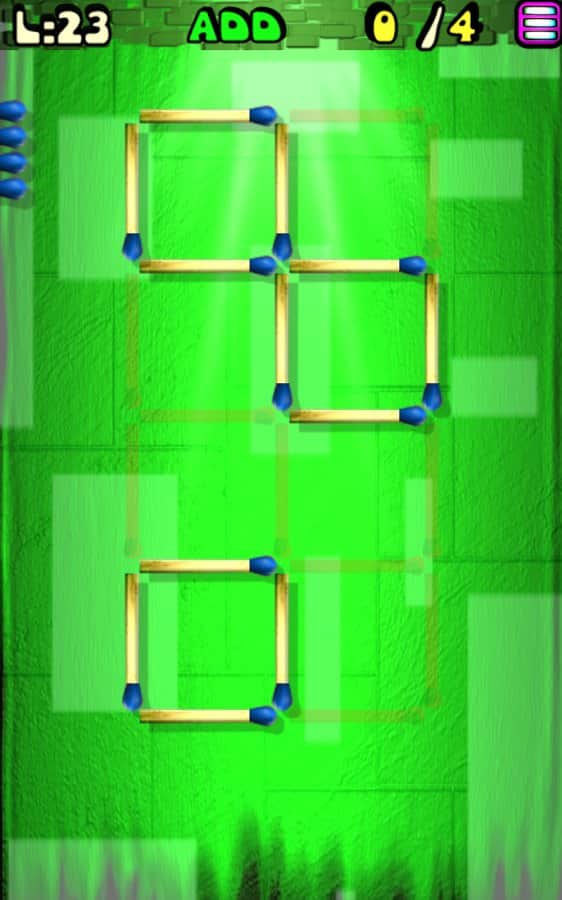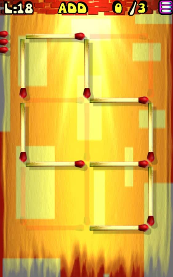 Matches Puzzle Game – увлекательная игра головоломка на андроид, в которой вам предстоит складывать спички. Это интересная игра где складывая, добавляя или удаляя спички вы будете получать различные фигуры которые при правильном решении будут сжигаться. Решайте эту сложную головоломку и пройдите все 1000 уровней в 10 эпизодах, где вы увидите большое разнообразие форм, конструкций и размеров. Игра с качественной HD графикой, которая хорошо отображается на разных устройствах с разным разрешением одинаково. Сохраняйте свои результаты в облаке и прогрессируйте, добиваясь лучших результатов в этой игре.