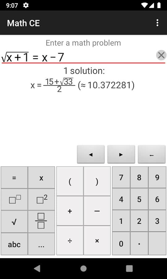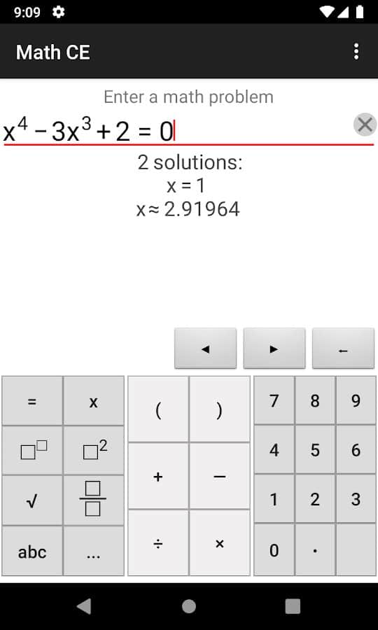 Калькулятор для Андроид Math CE поможет при расчете формул, уравнений и неравенств.