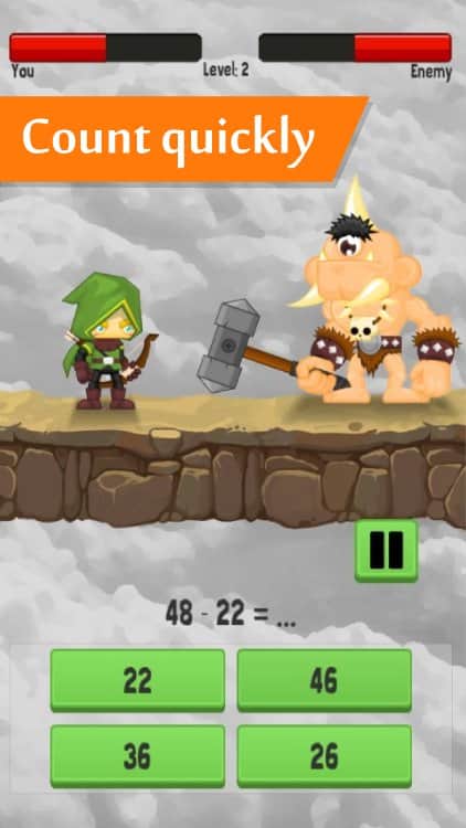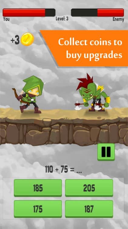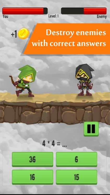 Math Heroes – герои математики эта такая увлекательная игра, в которой вам необходимо применять свои математические знания для того, чтобы победить опасных монстров. Вам необходимо давать правильные ответы на не очень сложные арифмитические задачки. Но простыми они будут только в начале игры, чем дальше вы зайдёте. Тем сложнее будет играть. А в конце будет просто ад) Вы должны будете сильно поднапрячься для того, чтобы пройти все уровни. Чем быстрее вы отвечаете, тем больше шансов на победу. За каждый правильный ответ, даются монетки, за которые можно прокачивать персонажа.