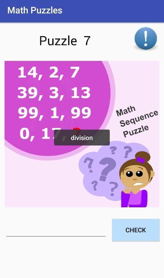 Math Puzzles PRO 2018 – отличная математическая головоломка на андроид, где вы будете тренировать ваш мозг и повышать логическое мышление. В этой игре представлено более 70 логических головоломок, каждая из которых имеет уникальную задачу, что заставит вас думать не стандартно. Главная цель игры заключается в том, чтобы найти шаблон, находящийся в головоломке, который в дальнейшем поможет вам ее решить. Эта игра будет развивать вашу наблюдательность, логическое рассуждение и математические знания. Играйте в эту игру в любое свободное время и проводите его с умом.