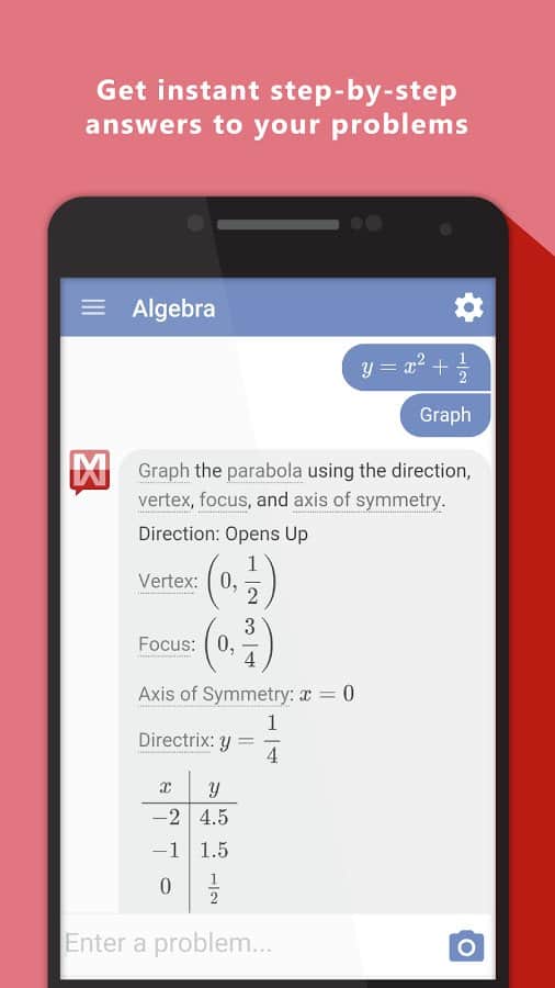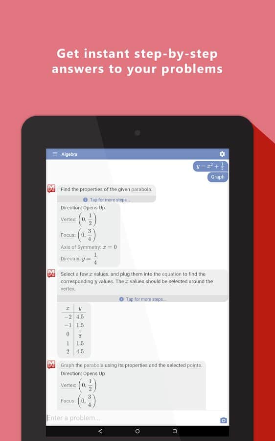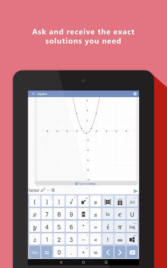 Mathway - Math Problem Solver - Это приложение на первый взгляд может показаться вам калькулятором, и это так. Однако оно не совсем обычный калькулятор, с его помощью можно будет решить не только самые сложные математические уравнения, в которых будет множество переменных, но так же можно построить график! На основе вашего уравнения, приложение само составит график, и выведет его вам на экран. Оно просто незаменимо если вы студент и не особо соображаете в математике.