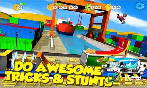 Max Awesome - трамплины, прыжки и опасности ждут вас в веселой и красочной аркаде о заездах на спортивном мотоцикле. Вас ждут умопомрачительные трассы с массой препятствий, которые заставят вас проявить все мастерство управления мотоциклом! Найдите самый безопасный и красивый выход из сложных ситуаций, собирайте бонусы и преодолевайте один уровень за другим! Ваши смелые трюки и петли дадут вам возможность после прохождения уровня приобрести новенькие шлемы или одежду, а вполне возможно, что и новый байк! Играйте с друзьями и поднимайтесь в таблице лидеров!