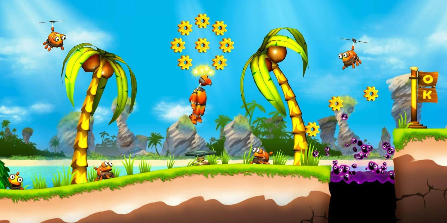 Maxim The Robot - классический двухмерный платформер с красочной графикой и разнообразным геймплеем. В данной игре вам предстоит играть в роли робота по имени Максим, который путешествует по загадочному миру Meca World, наслаждаясь красотами необычной вселенной. Однако его путешествие имеет и цель, ведь отважному роботу необходимо спасти прекрасную Миксам от Артикса. Вся игра разделена на более чем 70 уровней, проходя которые вам предстоит не только прыгать и бегать, собирая шестерни, но еще и плавать, лазать по стенам, решать головоломки, да и большая часть локаций проработана с акцентом на разнообразие игрового контента.