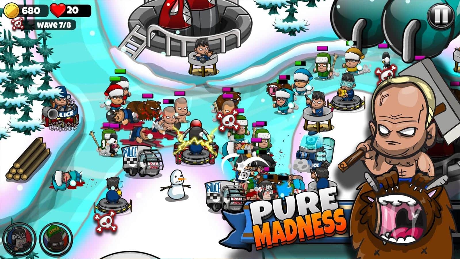 MAYOR MADNESS – увлекательная стратегия на андроид, с мультяшной графикой. В этой игре вы отправитесь в путешествие по различным мирам, которые будете защищать от демонстрантов. В игре в виде башен будут выступать полицейские, а нападать на вас будут толп демонстрантов. Разгоняйте их слезоточивым газом и дубинками, а также применяйте различную технику. С каждым разом игра будет становится все сложнее и интереснее. Прокачивайте и улучшайте своих полицейских применяя к ним разнообразное оружие и тип защиты. Локации игры будет меняться с каждым уровнем вы то будете сражаться в городе, то перенесетесь на сельскую местность или морскую набережную. Получайте бонусы и награды за отлично пройденные уровни и добивайтесь отличных результатов в игре.