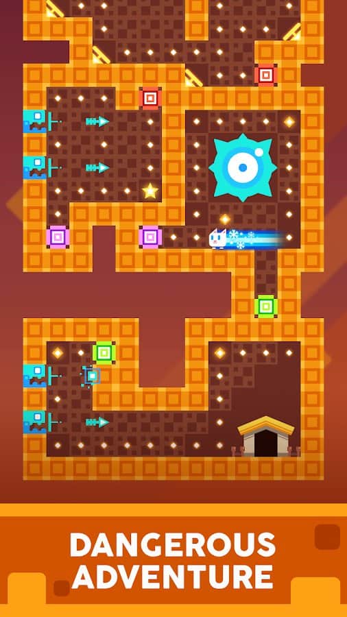 Освойте более 100 различных уровней, сбежав из запутанного лабиринта, в котором находятся сложные головоломки. Выберите понравившегося персонажа из доступных и начните безопасно перемещаться от стены к стене, при этом самостоятельно выбирая такой путь, где совсем нет ловушек. Вам предстоит не только выбраться из лабиринта, но и собрать все точки, звезды, чтобы покупать новых персонажей и улучшать определенные предметы. Старайтесь действовать аккуратно, иначе можете потратить всю свою энергию, на восстановление какой необходимо время.