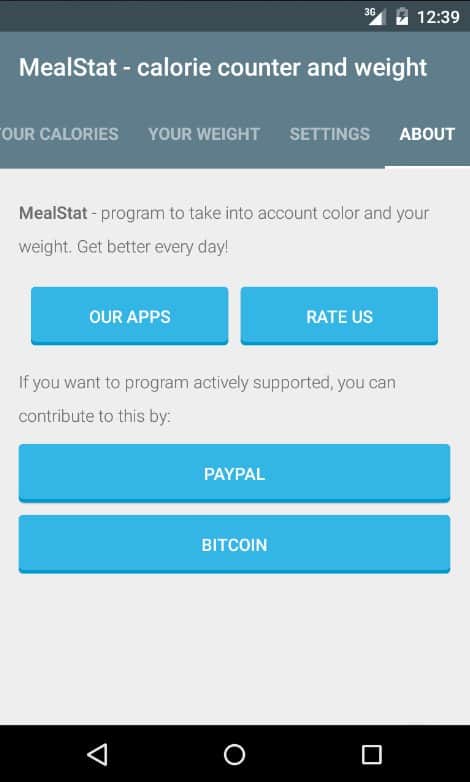 MealStat - счетчик калорий - Большое количество населения страдает избыточным весом. Ещё одна часть людей просто боятся поправится и стараются следить за своей фигурой и поменьше есть. Третья группа людей это спортивные энергичные люди стремящиеся совершенству и строго следуют указаниям своих спортивных тренеров. Всем трём группам, необходимо непременно знать точное количество потребляемых калорий, а это обычно сводилось к долгим поискам в книгах и других источниках. Теперь всё можно сделать гораздо проще. Выбираем нужный нам продукт из огромной базы, и вы сразу-же увидите его калорийность. Ведите дневник и смотрите на динамику изменения вашего веса.