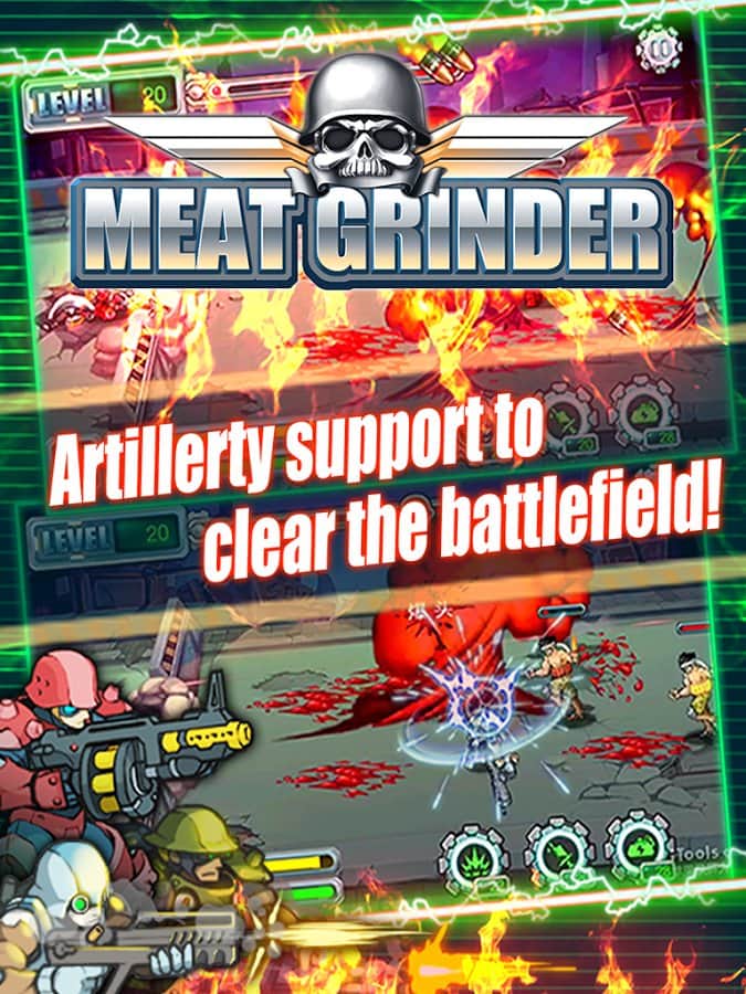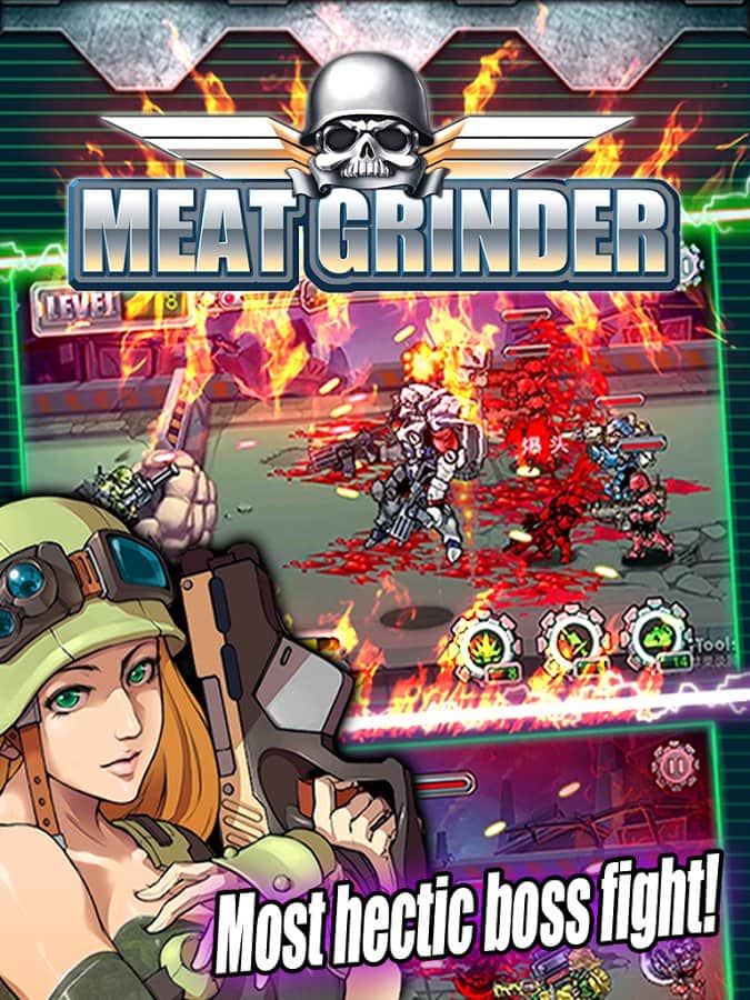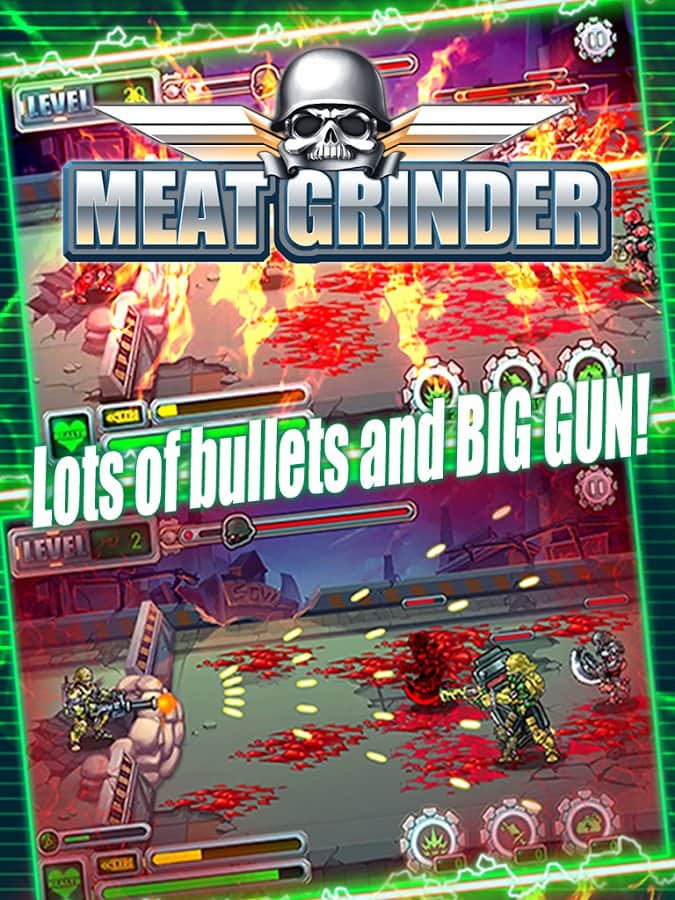 Meat Grinder - экшен аркада которую довольно трудно отнести к определенному жанру, это скорее стрелялка, в большей степени смахивающая на безбашенное мочилово. Но при этом здесь не трудно разглядеть элементы обороны башен, сражений из серии стенка на стенку и прочих игровых элементов главная цель которых придать геймплею динамики и драйва. Но теперь поподробней, в плане сюжета разработчики не стали ломать голову и просто забыли о нем как таковом, геймпллей так же незамысловат, вы находитесь за стеной которую непрерывно атакуют вражеские солдаты ,вам же необходимо уничтожать все что движется в вашу сторону. А вот о системе развития, внушительном арсенале создатели игры позаботились, так что способов уничтожения вражеских единиц у вас будет достаточно.