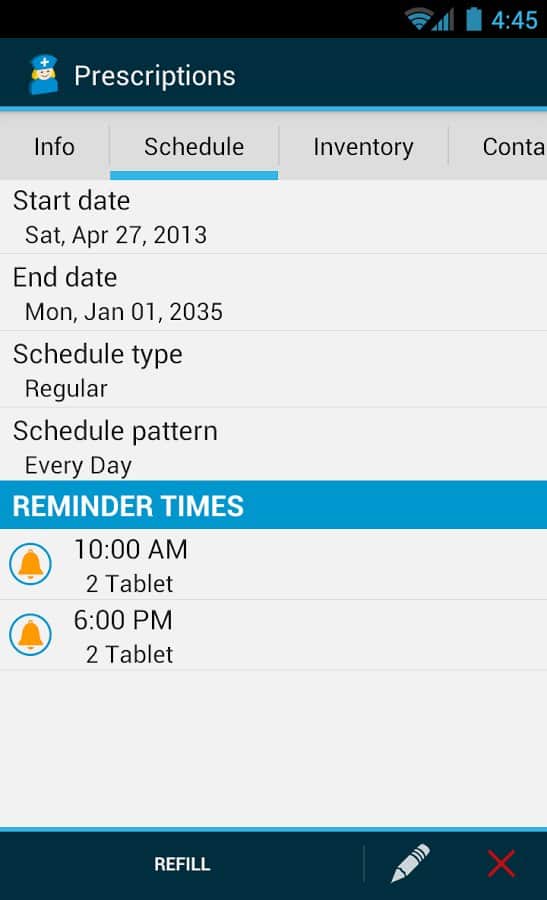 Med Helper Pill Reminder для андроид от EarthFlare, представляет собой приложение для напоминаний о приеме лекарств. В том числе Med Helper предупредит вас: когда лекарства в упаковке уже на исходе и их требуется докупить, об истечении срока годности лекарств, а так же многое другое. Будьте здоровы!