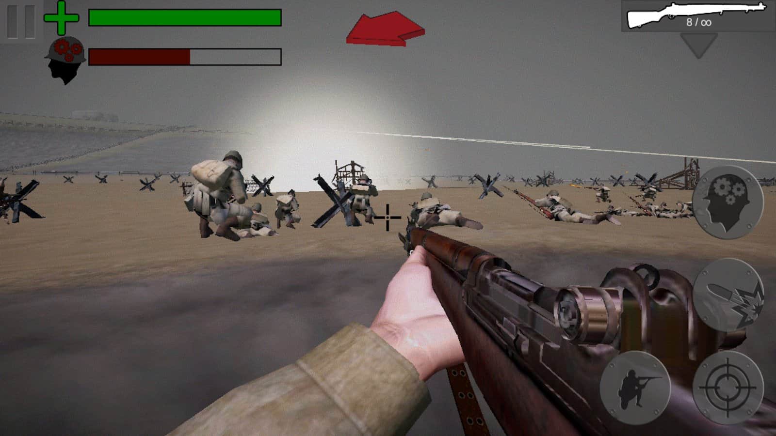 Medal Of Valor D-Day WW2 – перенеситесь во времена Второй мировой войны и сражайтесь за оккупированную Францию. В этой игре вы будете выступать в роли нескольких солдат которым необходимо взять в руки оружие и уничтожить германскую армию, которая напала на Францию. Выполните свой долг перед родиной и защитите ее от врагов. Боритесь за освобождение Франции с многочисленными союзниками и следите за счетчиком психологического здоровья каждого бойца. Езжайте прямиком на поля сражений и наслаждайтесь динамичными и смертельными битвами и реалистичными визуальными эффектами. Играйте в самую современную на сегодняшний день игру про Вторую мировою войну и одержите победу над противником.