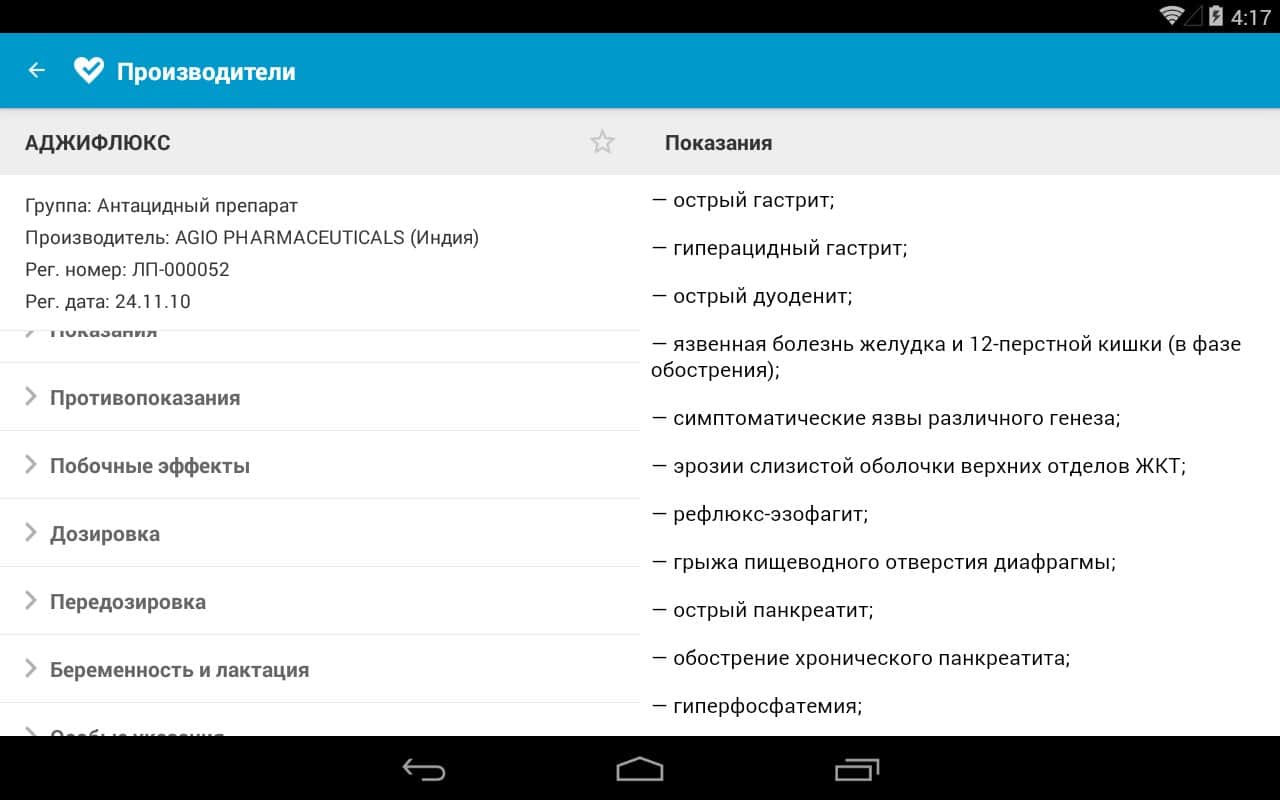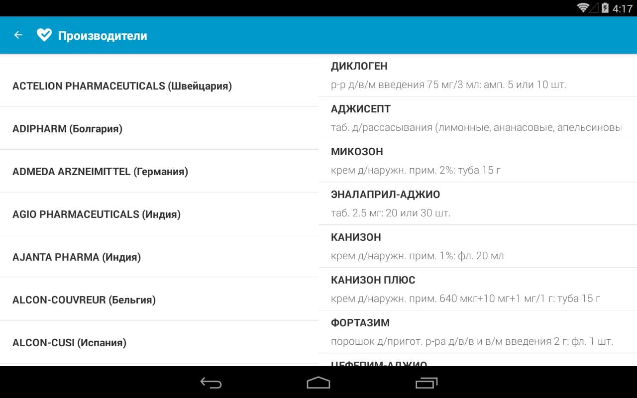 • Возможность сохранять препараты в избранное;