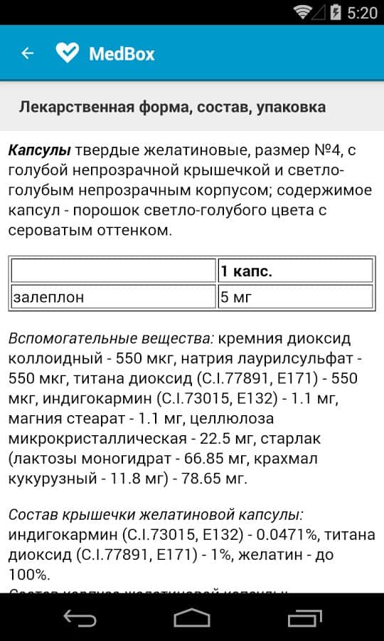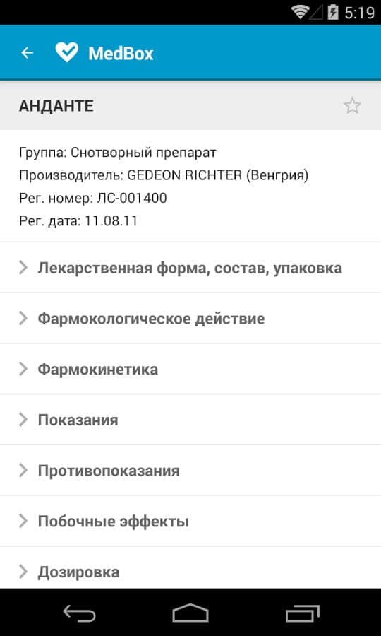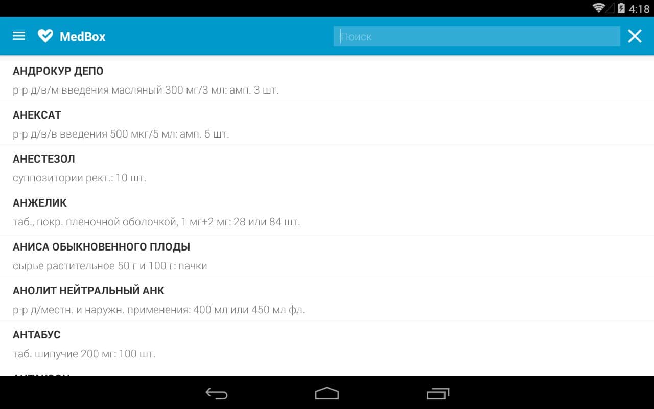 MedBox – полезное приложение для повседневной жизни, представляющее собой современный справочник лекарственных препаратов, не требующий подключение к интернету (исключение – первый запуск приложения). Удобная навигация меню, приятный интерфейс. Данный справочник предназначен только для ознакомления. Необходимо помнить, что самолечение может быть не только бесполезным, но даже опасным. Прежде чем совершить покупку, проконсультируйтесь с врачом.