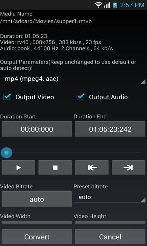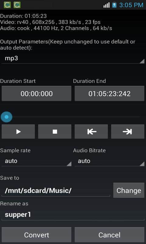 Media Converter для андроид. Отличное приложение от разработчика Android-A, которое может пригодится в любой момент и должно быть под рукой. Приложение проведет конвертацию всех возможных медиа-форматов в наиболее популярные медиа-форматы, такие как: MP3, MP4 (MPEG4, AAC), OGG (Theora, FLAC), 3GP (H263, AAC), AVI (MPEG4, MP3), MPEG (MPEG 1, MP2), FLV (FLV, MP3) и WAV, в том числе Media Converter содержит следующие аудио-профили: m4a (AAC-только аудио), 3ga (AAC-только аудио), Oga (FLAC-аудио только). Есть возможность нарезки файлов для создания рингтонов звонка и многое другое.