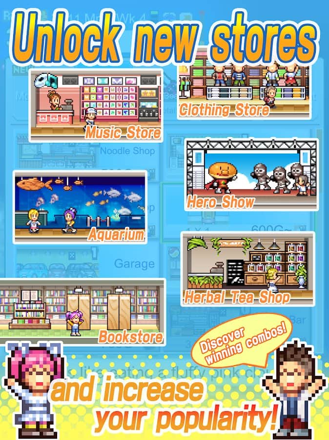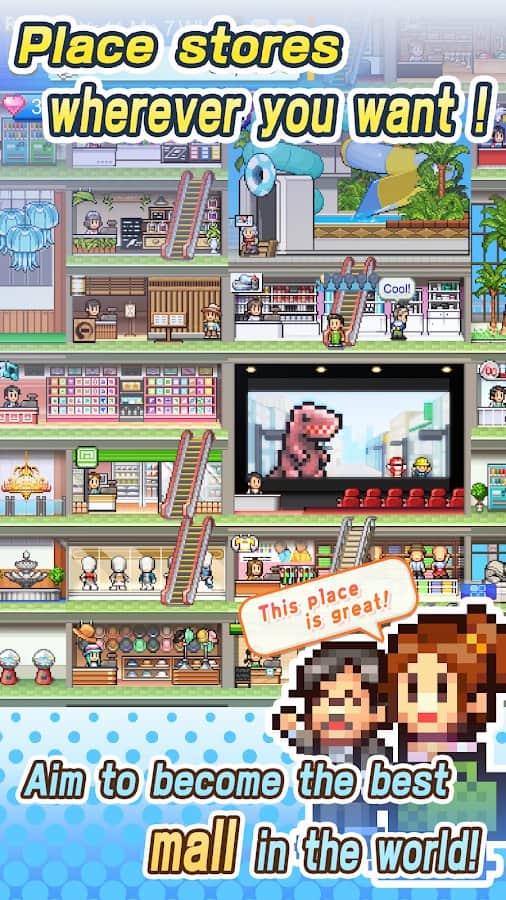 Mega Mall Story2 – отличный симулятор на андроид, где вы будете создавать свой торговый центр. В этой игре вы сможете создать свой уникальный торговый центр подобрав для него формы и размеры. Стройте торговый центр и размещайте в нем выставки, кинотеатры, бассейны и даже ферму. Привлекайте в свой центр больше посетителей строя возле магазина станцию общественного транспорта. Теперь в ваш магазин можно приезжать на автобусе, метро, вертолете и даже НЛО. Встречайте новых посетителей торгового центра и приготовьте для них все самое лучше и интересное. В вашем магазине можно будет как поесть миску рамена, так и купить хорошую книгу.