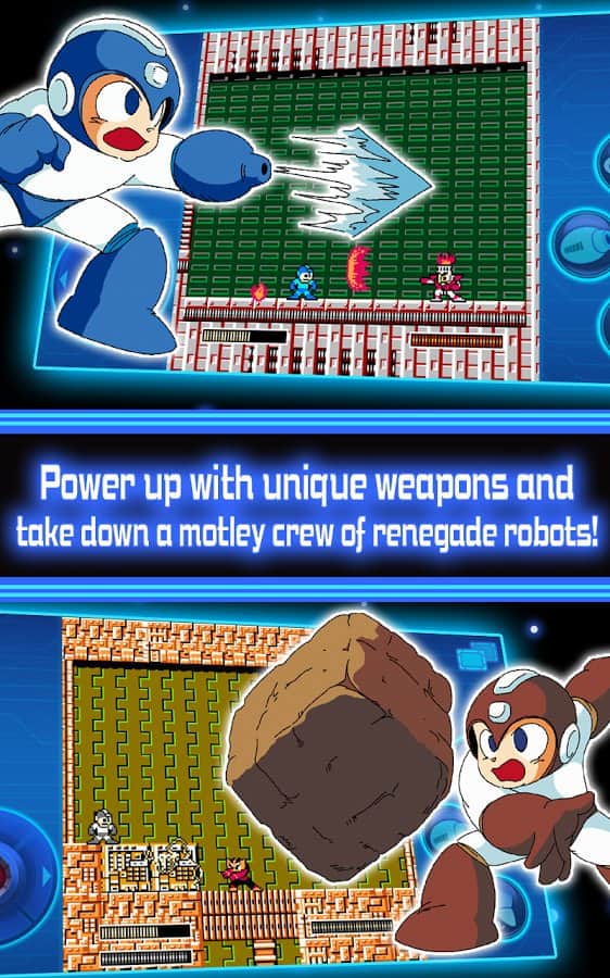 MEGA MAN MOBILE 1,2,3,4,5,6 – все части классического платформера со знаменитым героем в главной роли теперь и на андроид телефоны. В этой игре шесть роботов были созданы доктором Света для того чтобы победить злого гения доктора Wily который хочет уничтожить весь мир. Только один робот из всей шестерки Mega Man героически отправился в опасное путешествие по многочисленным локациям игры, стараясь уничтожить всех врагов и восстановить мир. Перемещайтесь по многочисленным платформам игры и уничтожайте всех врагов и приспешников доктора зло. В игре представлено два режима игры: обычный и очень сложный, где ваши враги будут обладать недюжинной силой, которая способна нанести вам значительный урон, а также на уровне будет меньше контрольно-пропускных пунктов. Обратите также свое внимание на то, что геймплей может немного отличатся от оригинала за счет оптимизации под смартфоны.