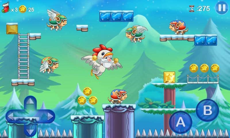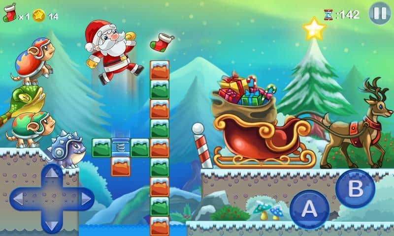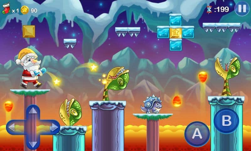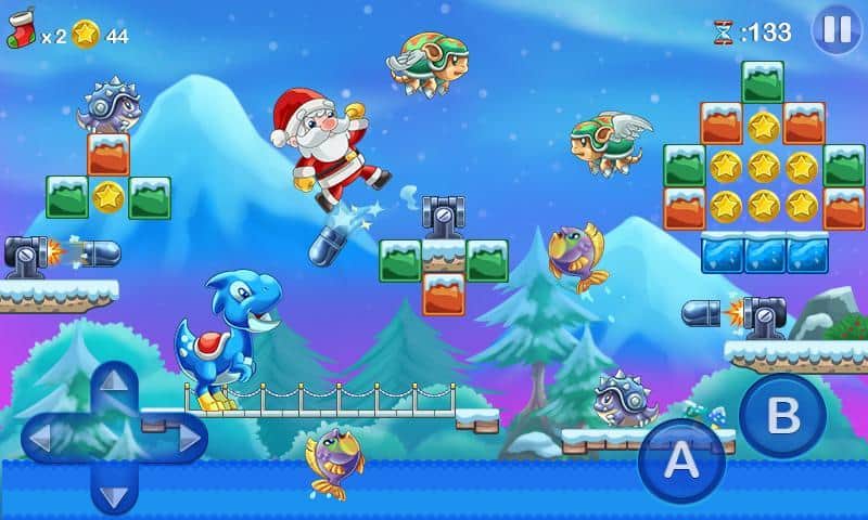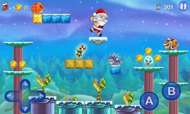 Mega Santa – платформер в котором вы будете помогать Санта Клаусу доставить подарки детям. Наш герой попал в странный мир населенный различными невероятными существами, которые мешают ему развозить подарки, вашей задачей будет помочь Санта Клаусу добраться до своей упряжки и привезти подарки вовремя. Прыгайте с платформы на платформу и обходите все препятствия на своем пути, собирая сладости и различные бонусы которые позволят герою летать и наделят другими способностями. Также на пути вы встретите не только врагов, но и своих помощников. Игра подарит вам праздничное настроение благодаря музыке и рождественской атмосфере.