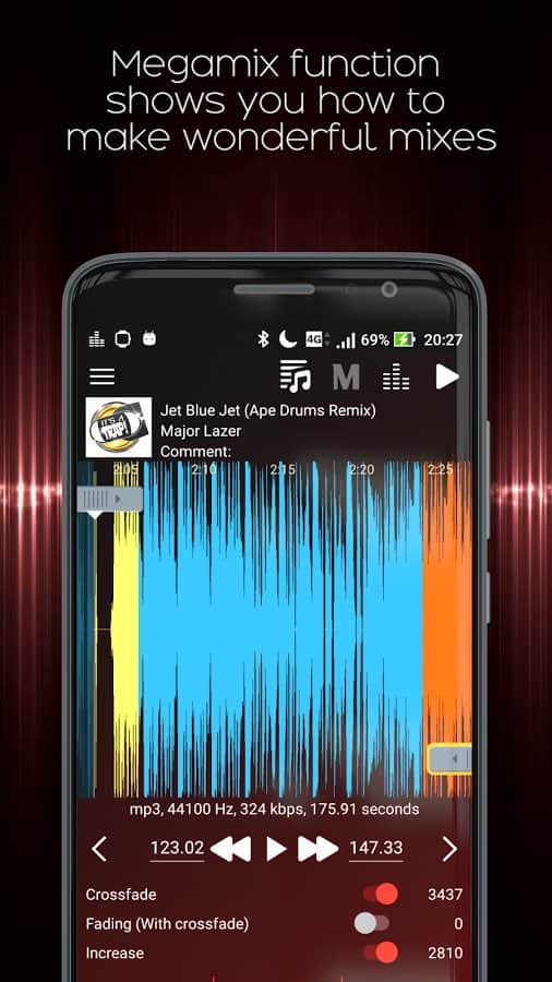 Megamix Player - music player - На первый взгляд это самый обыкновенный аудио плеер, но все его возможности открываются в тот момент когда вы переходите в режим миксов. В дополнении к обычному плееру это ещё и настоящий диджейский пульт с множеством дополнений и настроек. Здесь конечно нужно иметь хоть какой то опыт работы в музыке. Однако если вы разберетесь с этим то определенно сможете создавать нечто новое.