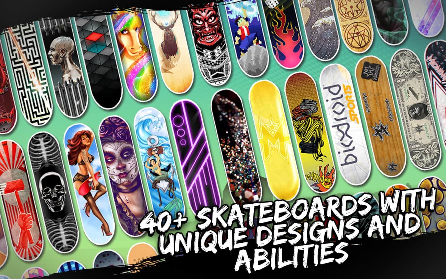 MegaRamp Skate Rivals - Путешествуйте по миру на скейте и участвуйте в различных конкурсах. Путешествуйте и разблокируйте новые уровни для дальнейшей игры, научитесь новым трюкам и покажите своё мастерство. Вас ждут сумасшедшая 3D графика, более 40 уровней игры и огромный выбор великолепных скейтов.