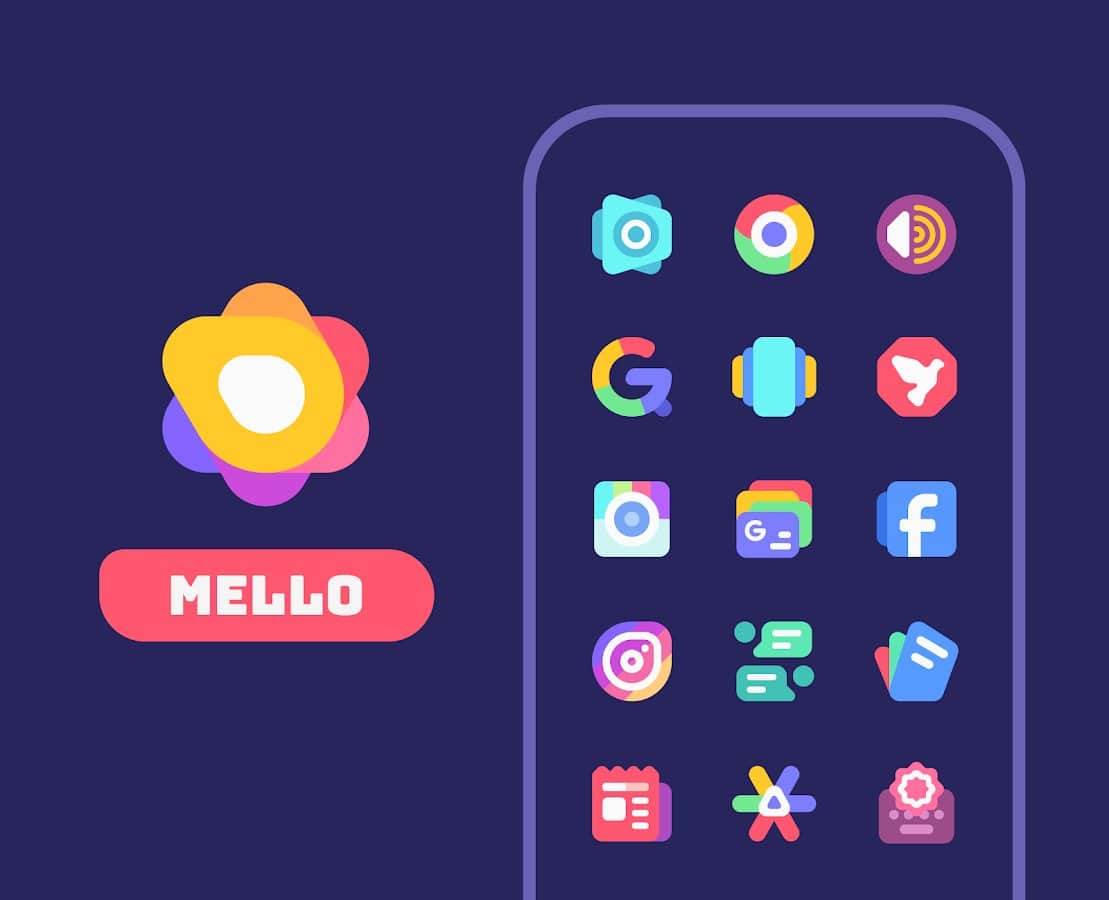 Представляем Mello - элегантный и утонченный набор иконок, который добавит вашему устройству изысканный и единообразный вид. Эти тщательно проработанные значки с плоским дизайном отличаются спокойной и гармоничной цветовой палитрой, создавая на главном экране поистине стильную и сбалансированную композицию. Mello включает в себя впечатляющую коллекцию из более 1050 иконок, которые регулярно пополняются новыми обновлениями.