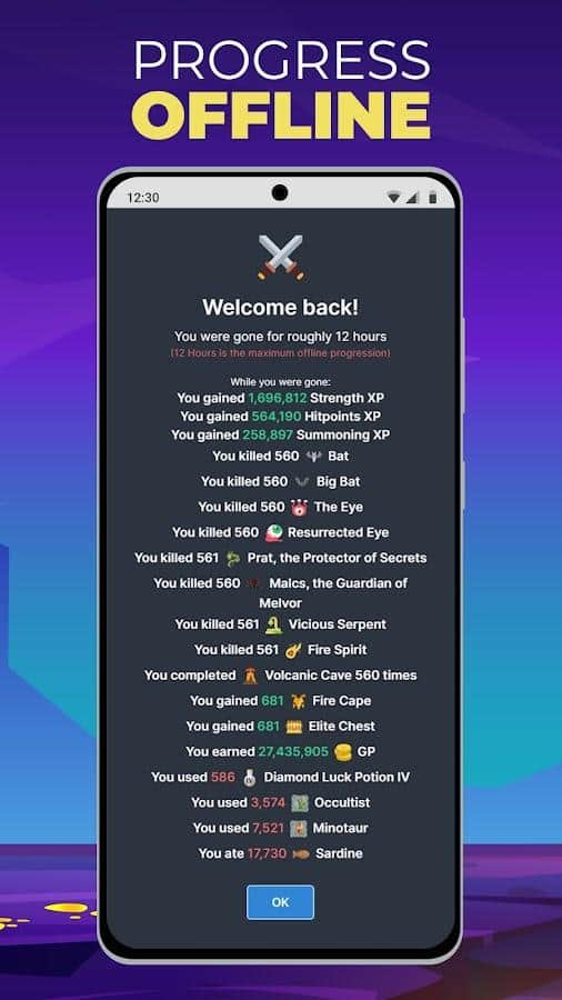 Melvor Idle - Idle RPG - Обучитесь специальным навыкам и полностью проникните в атмосферу приключений, которые скрываются внутри этого загадочного мира. Встречайте множество беспощадных монстров и их боссов на своем пути, сражайтесь с ними, отправляйтесь на особые экспедиции в различные места, прокачивайте всех своих персонажей и настройте автоматическую игру, даже когда вы её покидаете. Детальнее углубитесь в составление четких стратегий и используйте их, как свое главное преимущество. Прогресс не заставит вас ждать, если действительно приложите усилий.