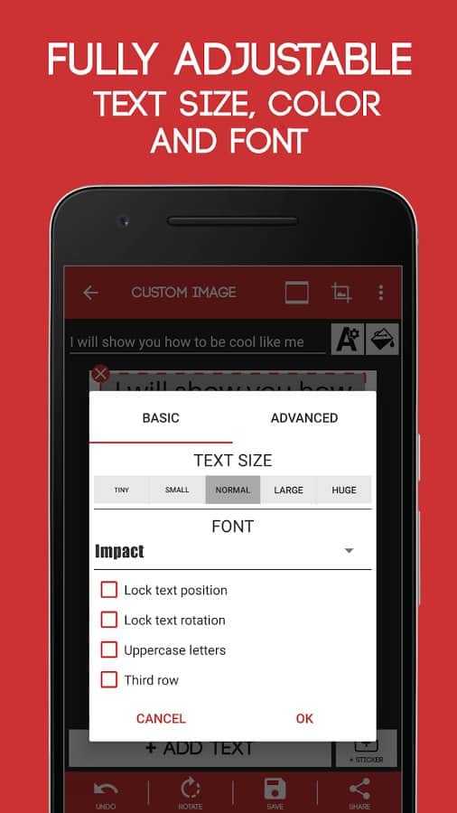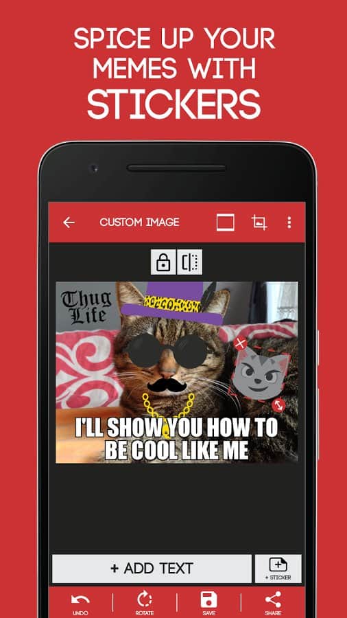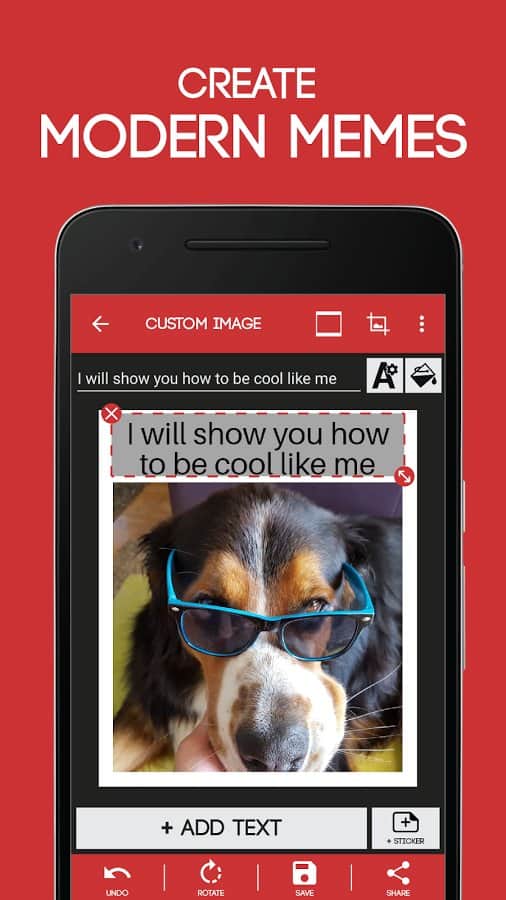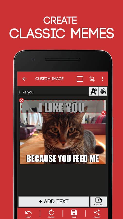 Meme Generator - Вы все правильно поняли, это мемо-генератор. Простое приложение с помощью которого вы сможете создавать веселые мемчики без особых проблем. Здесь собраны самые популярные картинки из интернета, и все что вам нужно это добавить к ним нужную надпись. Изменять текст здесь довольно просто, все что вам нужно это задать его параметры, выбрать шрифт и цвет и вперед. Так же есть различные дополнения и стикеры которые вы сможете поклеить поверх самой картинки.