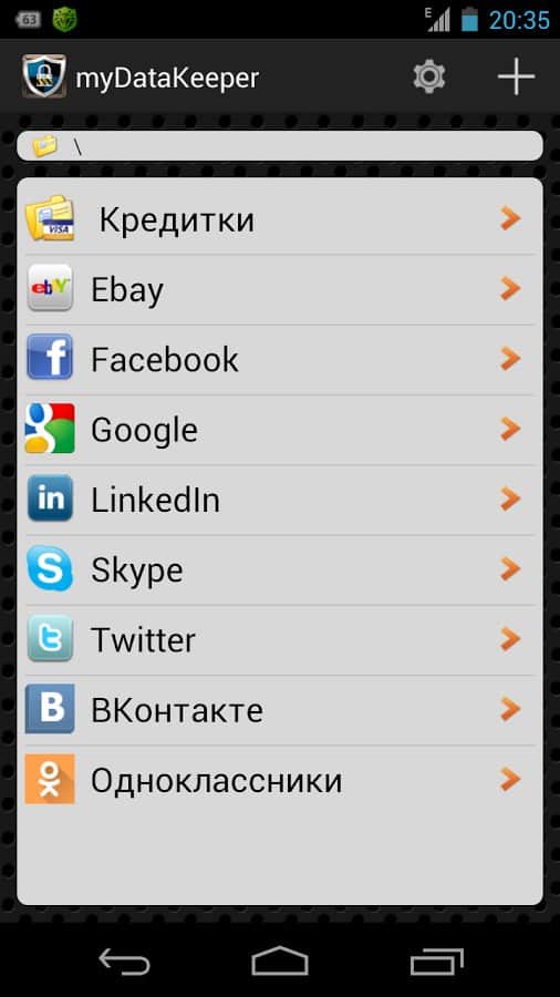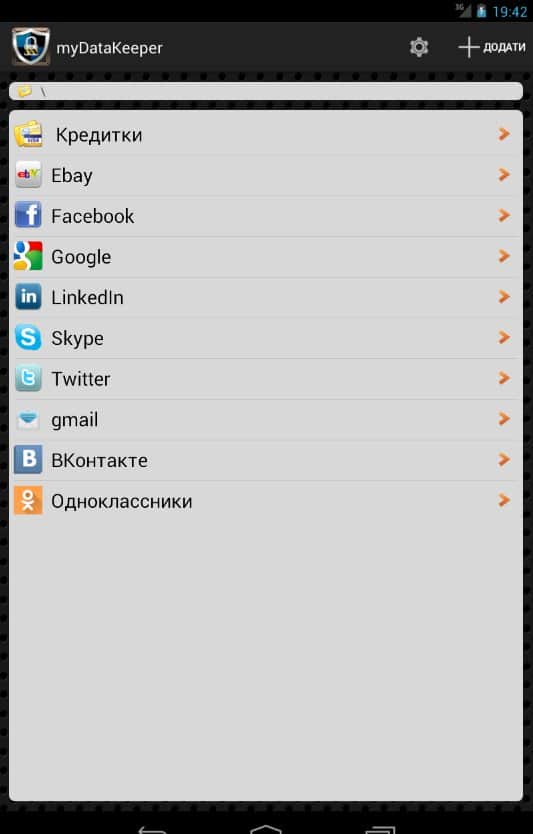 Менеджер Паролей –MyDataKeeper – полезное приложение на андроид для тех, кому приходиться все время держать в голове все пароли, пин-коды и прочую личную информацию, благодаря уникальному способу шифрования данных, созданному на основе персонального ключа, вы сможете надежно скрыть конфиденциальную информацию от посторонних лиц и быть уверенным в завтрашнем дне. Данная программа дает возможность управления вашими данными в любое время и в любом месте быстро, надежно и главное безопасно.