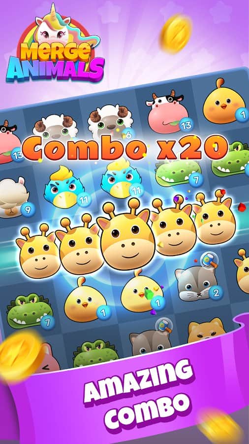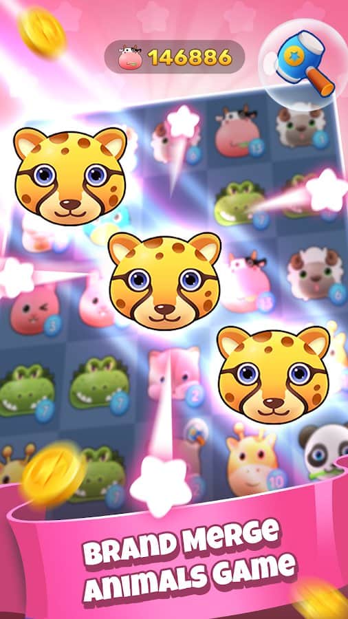 Merge Animals - Насладитесь прекрасной игрой и получите огромную коллекцию различных животных, которые будут получены в случае соединения между одинаковыми видами. Используйте многогранные комбо для получения еще большего опыта, а также поэкспериментируйте над процессом вместе со специальными возможностями, открывающими множество новых комбинаций. Соберите всех поросят, овец, леопардов, кроликов, жирафов, коров, крокодилов, енотов и других зверюшек, чтобы собрать реальный зоопарк и руководить им, защищая подопечных.