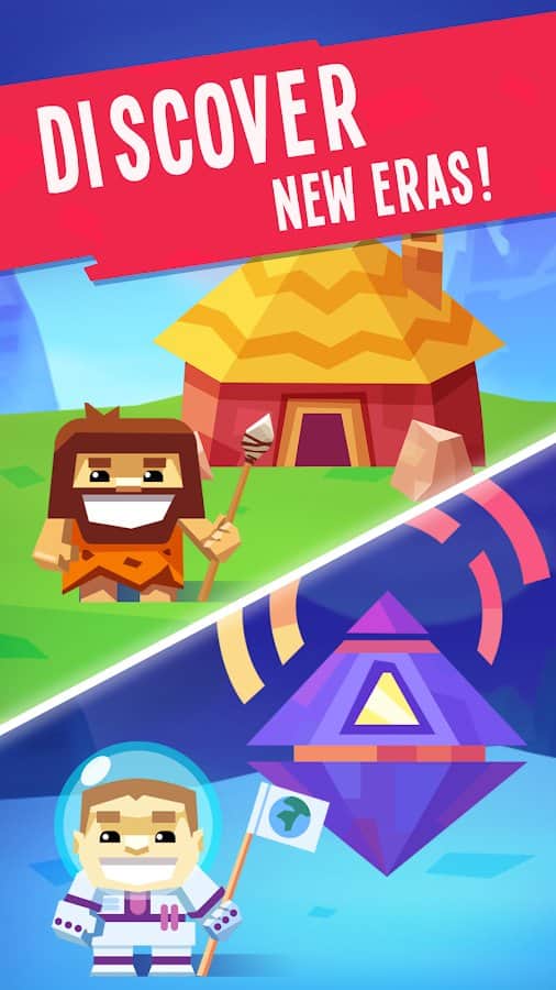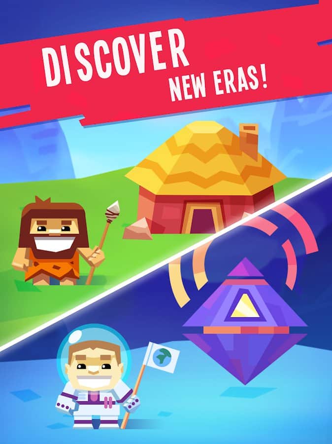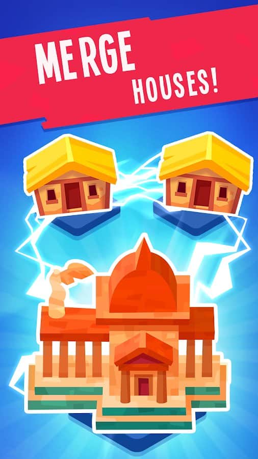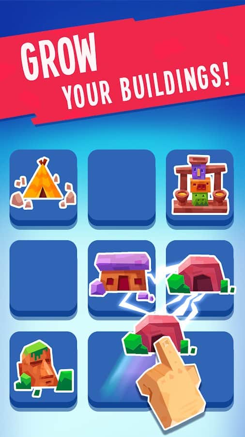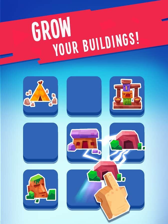 Объединяйте здания, чтобы открывать новых героев и возрастов.