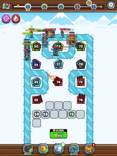 Merge Kingdoms - Tower Defense - Спасите королевство от страшных монстров: поставьте башни вокруг дороги и уничтожайте всех подряд, чтобы они не добрались к замку! Магия, мифические существа, мутанты и другие персонажи имеют уникальные способности, со временем которые обретают новых форм. Открывайте сундуки с драгоценными ресурсами, создавайте лучшие башни из списка с 20 видами, проходите напрягающие уровни, сражайтесь с боссами, исследуйте новые миры и используйте дополнительные способности в качестве экстренной помощи (торнадо, электричество, огненные шары, прочее).