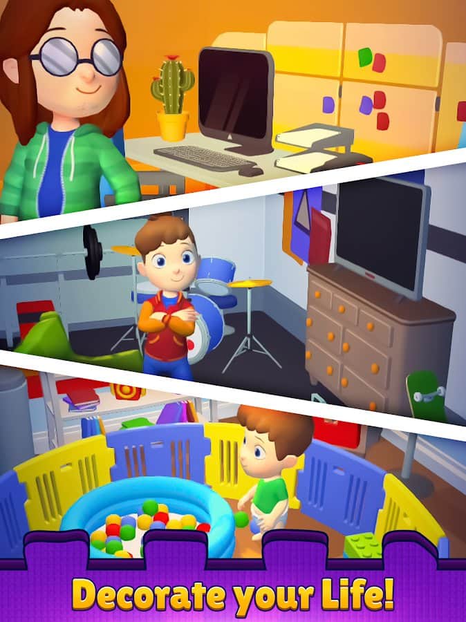Merge Life - обеспечьте собственному ребенку хорошую комнату, чтобы он всегда был счастлив. Станьте тем родителем, который всегда позаботится о своем малыше и подарит ему только то, чего тот желает. Проявите любовь: украшайте комнату дитя до полного его взросления, давайте необходимые предметы для радости, помогайте определиться с выбором профессии на жизнь и получите как можно больше золотых звезд для правильного использования. Воплощайте задуманные идеи в жизнь, при этом радуясь вместе с маленьким человечком.