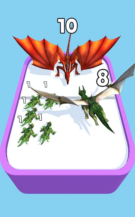 Merge Master - Dinosaur Fusion - Соберите огромную коллекцию из самых динозавров, чтобы они смогли сразиться с любыми врагами (драконами, монстрами, трексами или другими динозаврами) на своем пути. Быстро соображайте на арене и действуйте по составленной стратегии, таким образом сильно нападайте и прочно защищайтесь от всяких вражеских атак. Переходите с каждым выигранным боем на новый уровень, повышайте возможности каждого динозавра, разблокируйте все разновидности динозавров и соревнуйтесь с другими в рисовании пальцем.