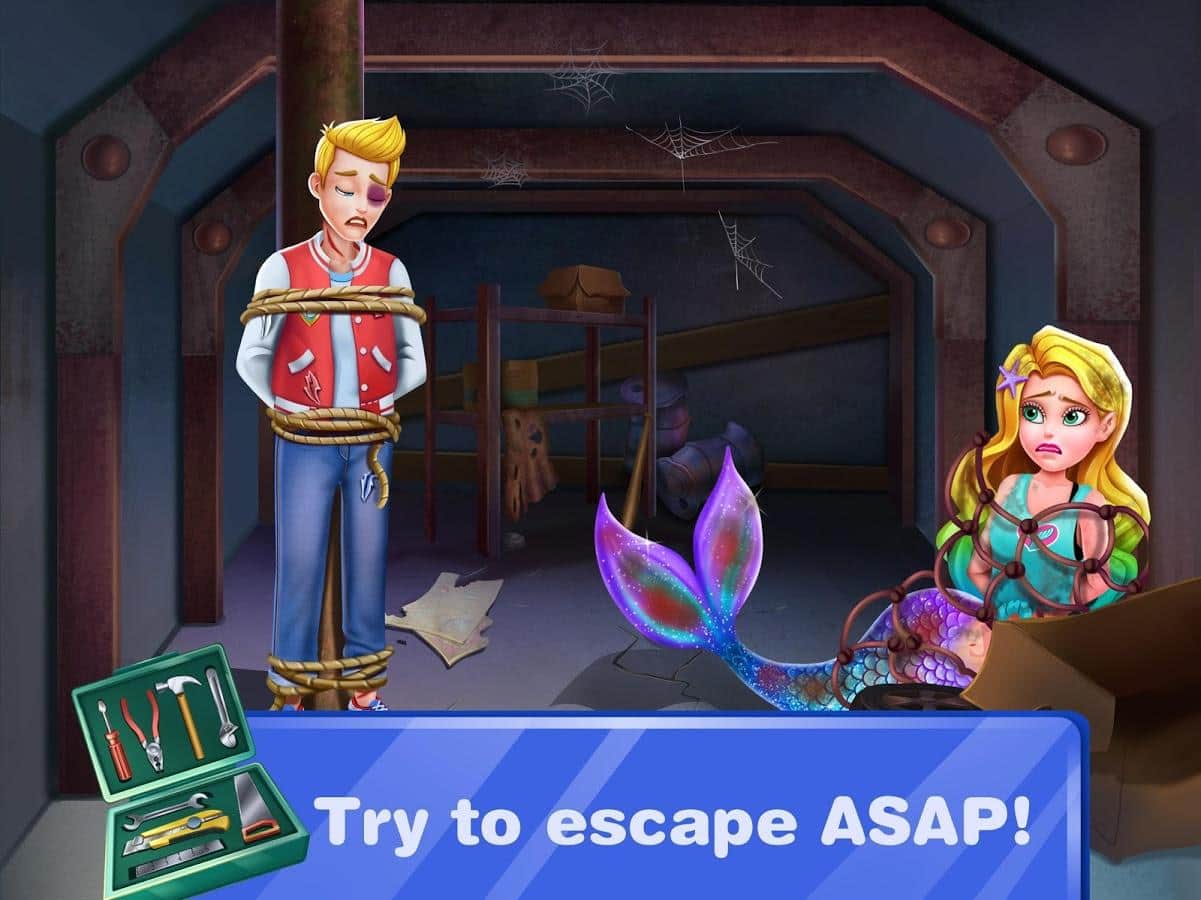 Mermaid Secrets16 – Save Mermaids Princess Sushi – увлекательная игра на андроид, где вы будете спасать русалку из плена. Нашу героиню по имени Миа похитил коварный Ален который продал ее сушисту который хочет сделать из русалки суши. Главный герой друг Миа Эрик решил помочь русалке и сам угодил в плен. Теперь последняя надежда осталась на школьную учительницу, которая должна пройти все испытания игры и помочь главной героине и ее другу выбраться из плена. Решайте многочисленные ребусы и задачи и попробуйте распутать весь клубок. Играйте в эту игру и наслаждайтесь увлекательным сюжетом и разнообразными локациями.