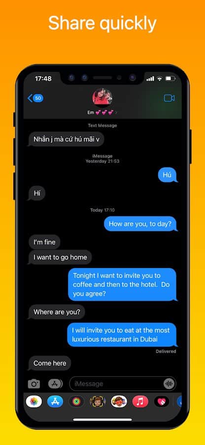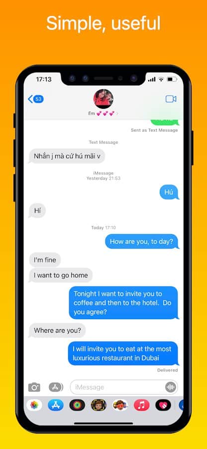Messages iOS 15 - Испытайте, каково это использовать функционал айфона на андроиде! Установив это приложение, перед вами откроется целый ряд новых возможностей для использования: интересный обмен сообщениями, переключение между светлой и темной теме, быстрая прокрутка сообщений вверх или вниз, легкий поиск определенного сообщения, умная сортировка, закрепление важных уведомлений и поддержание различных языков мира. С легкостью пишите, отправляйте, удаляйте, редактируйте сообщения и наслаждайтесь сделанными результатами!