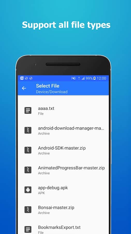 Просмотр и загрузка файлов без установки на устройство;