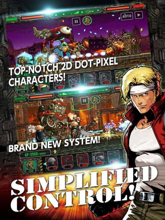 METAL SLUG ATTACK – стратегия для IOS, где вы будете сражаться с многочисленными врагами и строить свою базу. Занимайтесь строительством, а помимо этого выполняйте другие увлекательные миссии и задания. Постройте свою неприступную базу и нападайте на базы других игроков, освобождайте военные базы и спасайте заложников из плена. По ходу игры собирайте многочисленные предметы и ресурсы, которые позволят вам прокачать своих воинов и улучшить их. Играйте с другими игроками в режиме мультиплеер и одновременно участвуйте в эпических битвах, где на одной карте могут играть до 4-х игроков. Создайте непобедимую армию и победите всех противников.