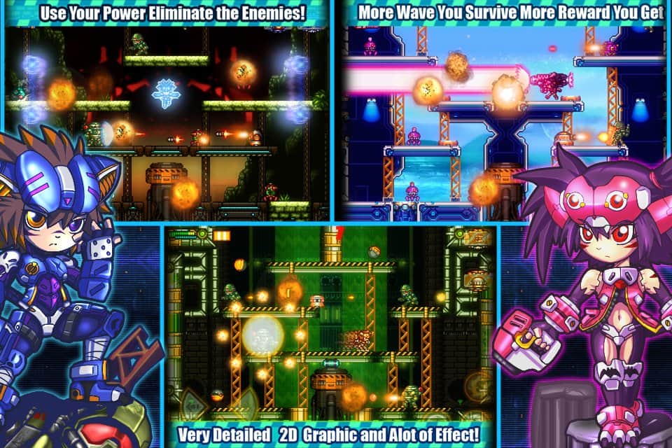 Metaloid : Reactor Guardian - игра, в которой вы отправитесь в опасное приключение на планету Metaloid. В этой игре вам предстоит собирать энергетические капсулы, которые должны восстановить разрушенный реактор единственный источник света на планете. Но сделать это будет не просто, капсулы находятся под охраной роботов. Выбирайте одного из четырех киборг героев и вступайте в бой с врагами. Каждый герой имеет свою индивидуальную мощность оружия и тактику обороны, так что делайте выбор с умом. За каждый пройденный уровень вам будут даваться кредит, на который вы сможете улучшить вашего героя и его оружие.