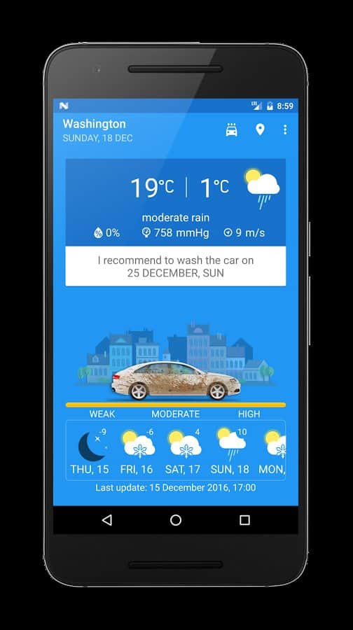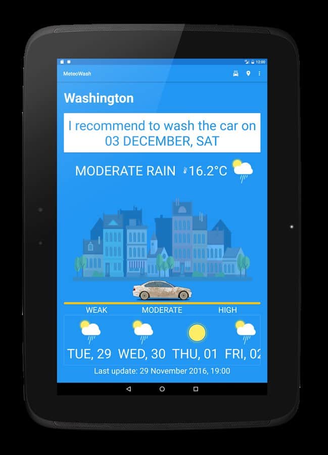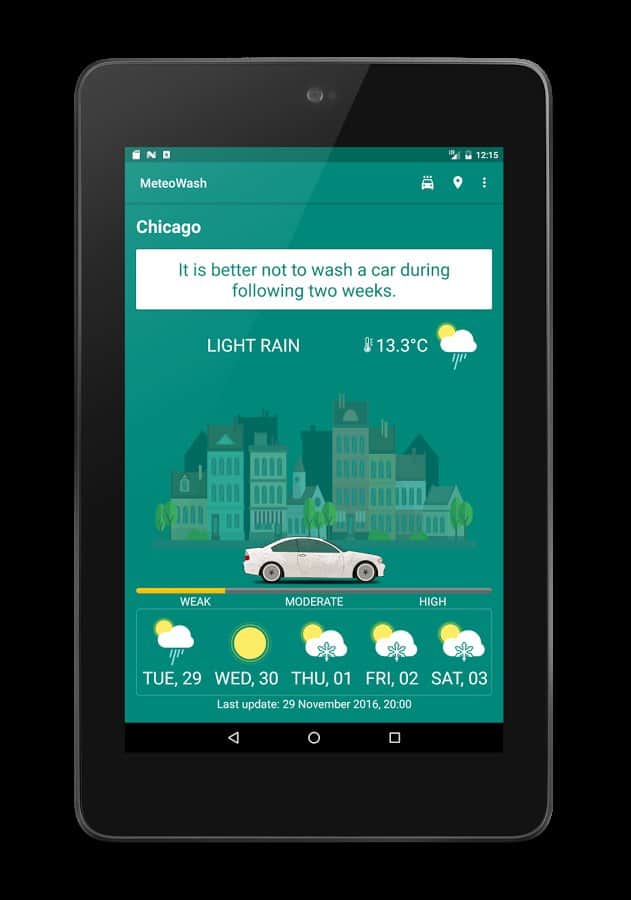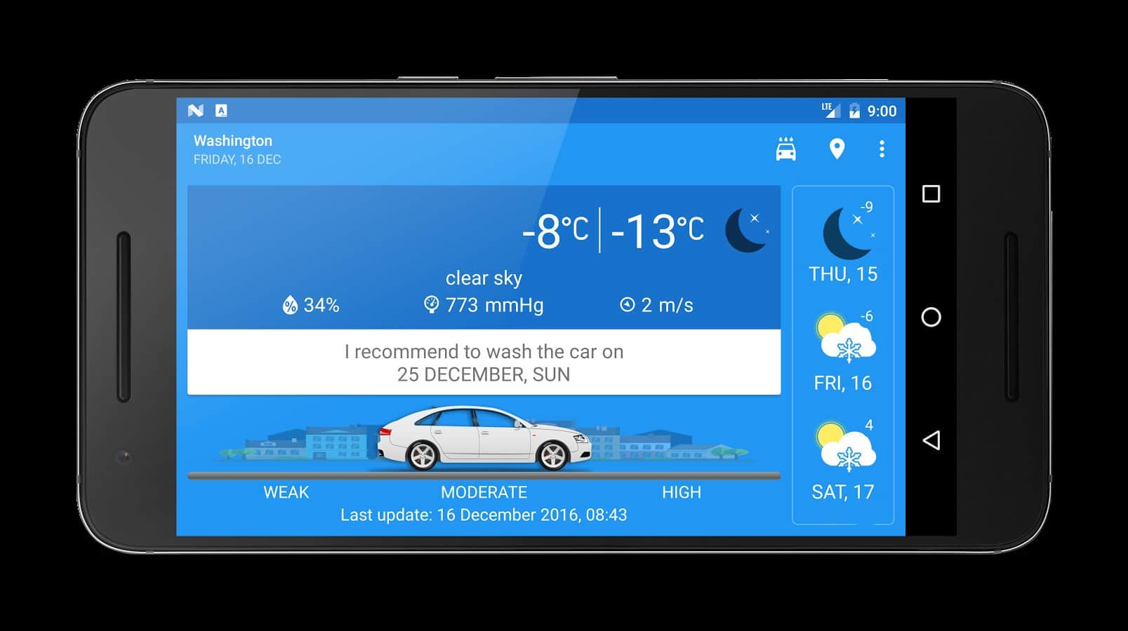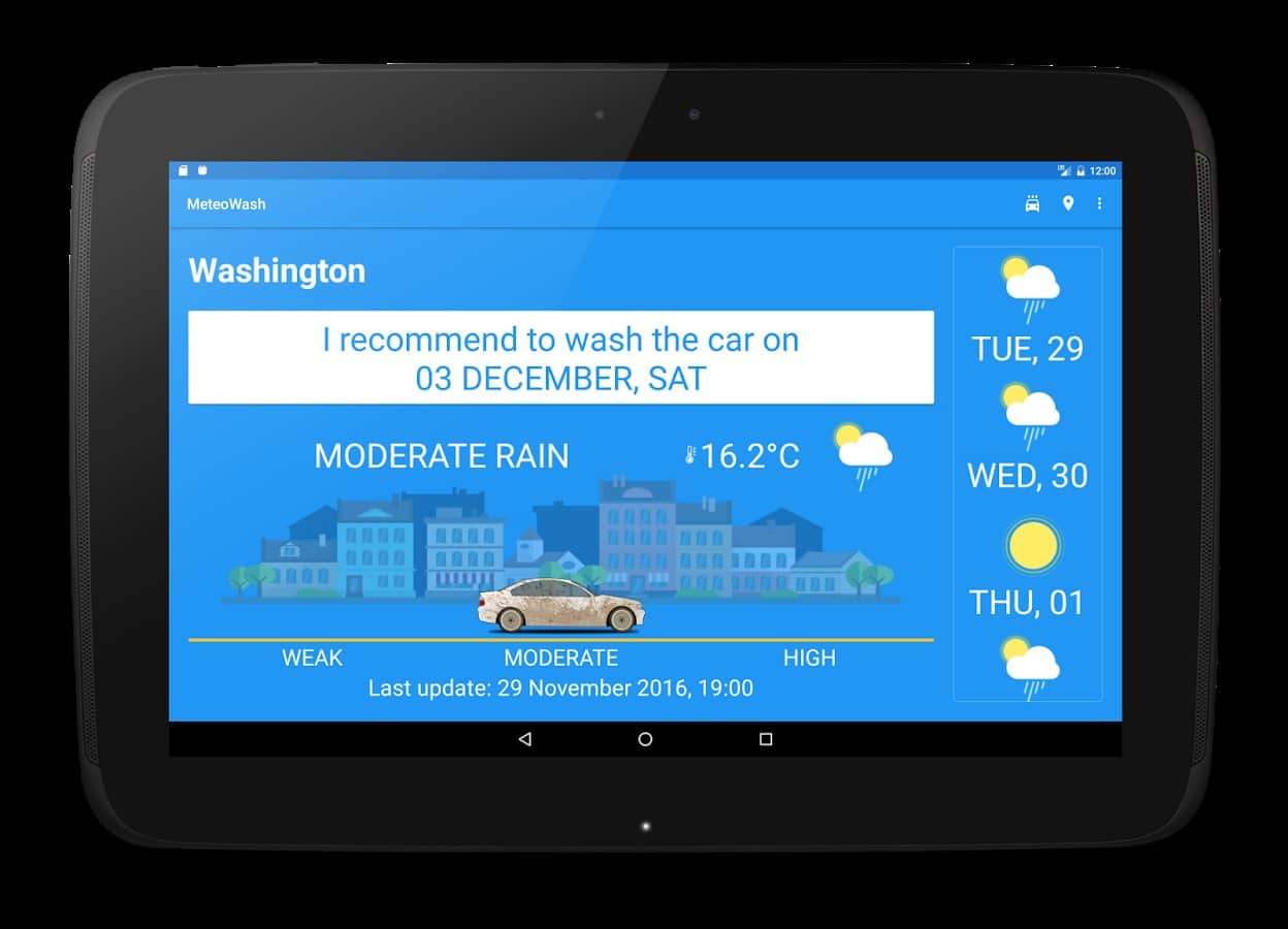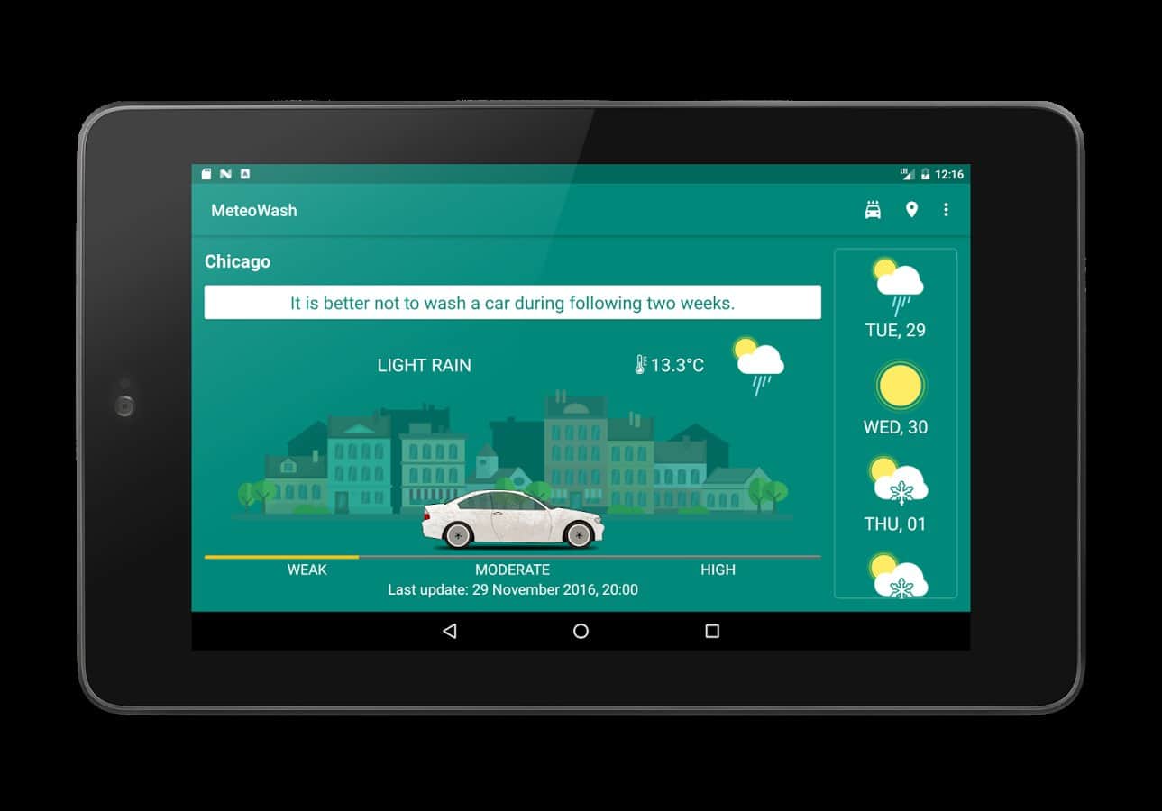 MeteoWash - nearest car washes - У всех была такая глупая ситуация когда вы только вот выехали с авто мойки, как тут же пошел дождь. Это приложение было посвящено автолюбителям, и тем кто думает мыть ему сегодня машину или же нет. Суть приложения конечно же очень простая, и заключается в том что показывает прогноз погоды. Однако основной уклон здесь сделан на то выпадут ли осадки, или же нет. К тому же прямо в приложении есть куча различных адресов авто моек и их номеров.