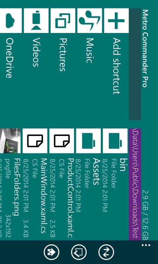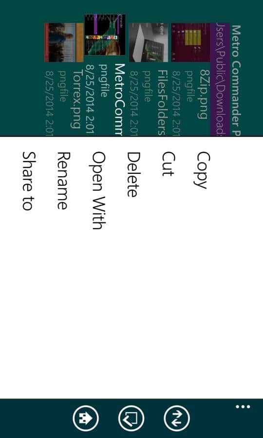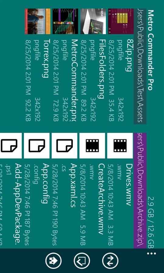 Программа представляет собой добротный двухпанельный файловый менеджер в полным набором возможных операций, как с файлами, так и с папками: создание, переименование, перемещение, копирование и прочие. Очень удобно, что Metro Commander позволяет работать не только с данными на устройстве, но и подключить облачное хранилище SkyDrive, поддерживается также работа с Dropbox.
