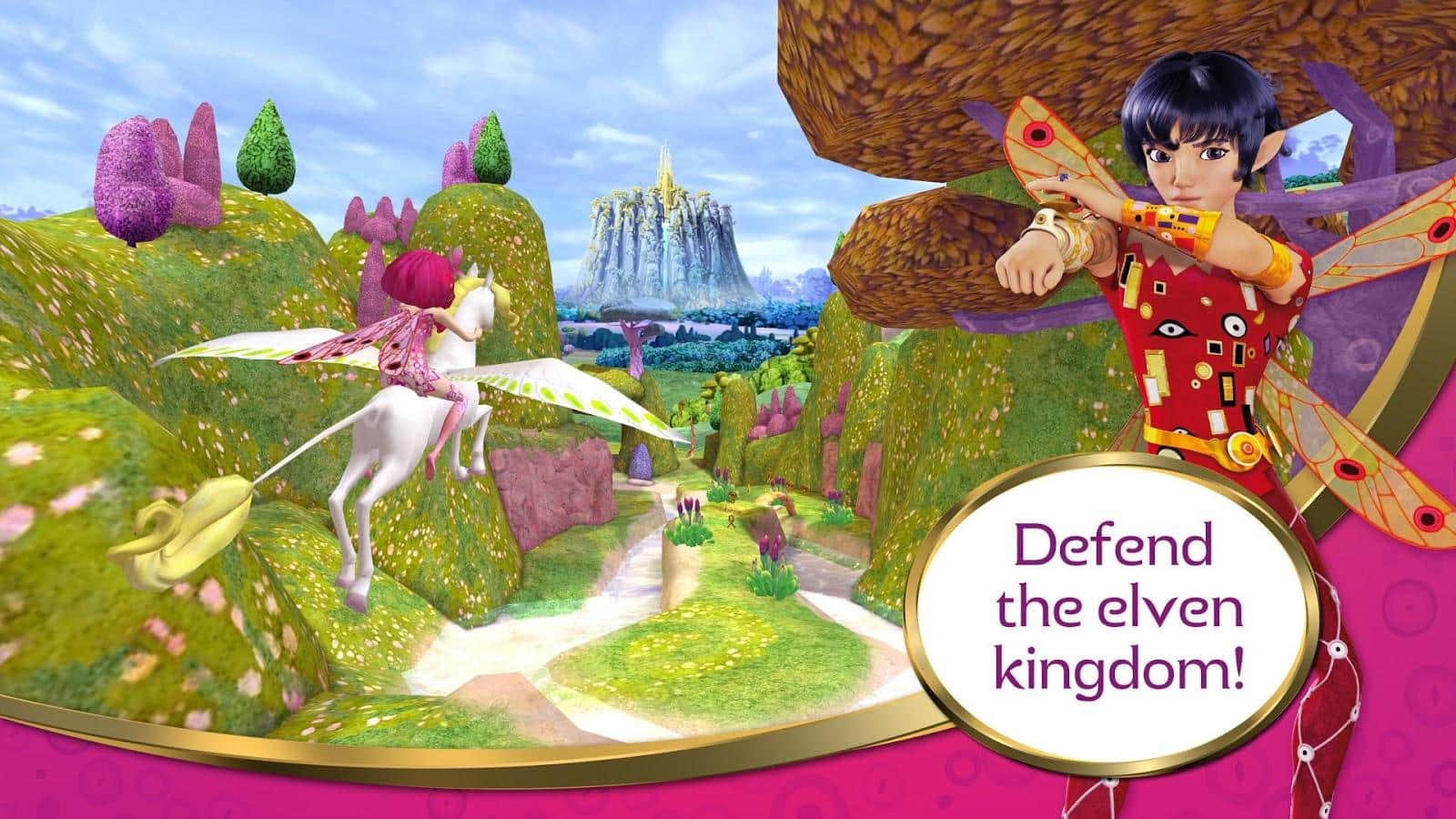 Mia and me - Все было спокойно в стране эльфов, пока не появилась злая Горгона и не похитила друзей маленькой девочки, которая превратилась в фею. Вместе с лучшим другом единорогом Онхао. она отправляется в опасное путешествие, чтобы освободить друзей и принца Мо из рук Горгоны. Летайте с единорогом по красивым полям и лугам, собирая пыльцу и магические предметы. Вас ждут 15 уровней игры, мультяшная современная графика и прекрасное музыкальное оформление.