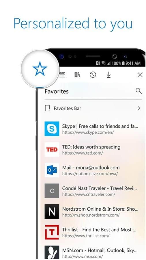 Microsoft Edge - отличный браузер с возможностью синхронизации с windows 10. Высокая скорость работы и тонкая настройка под любого пользователя. делает браузер подходящим для любого владельца андроид девайса.