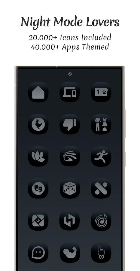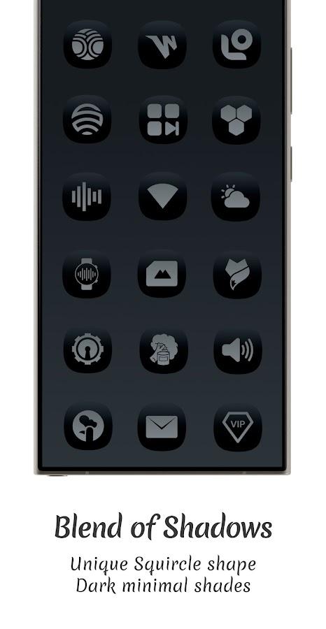 Midnight Dark Icon Pack — эксклюзивный пакет значков, где квадратные формы плавно сочетаются с круглыми, создавая гармоничный и современный образ. Темные градиенты придают иконкам глубину и контраст, делая их идеальными для ночного оформления Android-устройств.