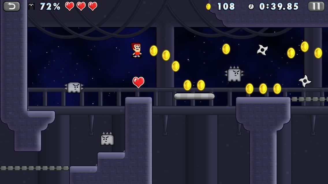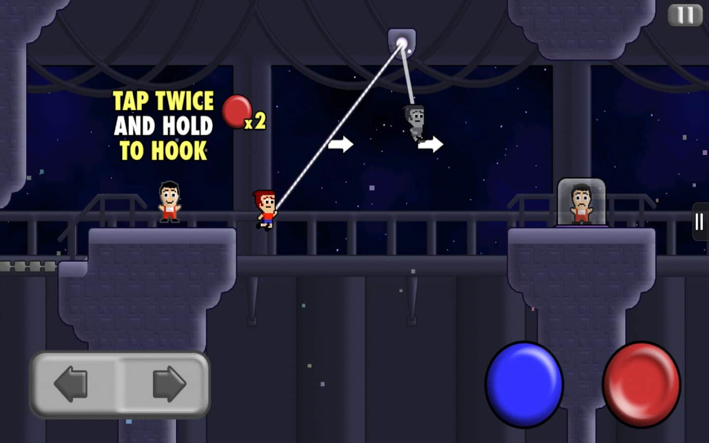 Mikey Hooks - веселый платформер в котором вы будете управлять человечком, бегающим по различным уровням. Бегайте, прыгайте, катайтесь с горок и летайте через препятствия на канате и все для того чтобы собрать как можно больше золотых монеток и добраться до финиша. Преодолевайте препятствия в виде разрядов тока, оврагов с шипами и врагов подстерегающих вас на каждом шагу.