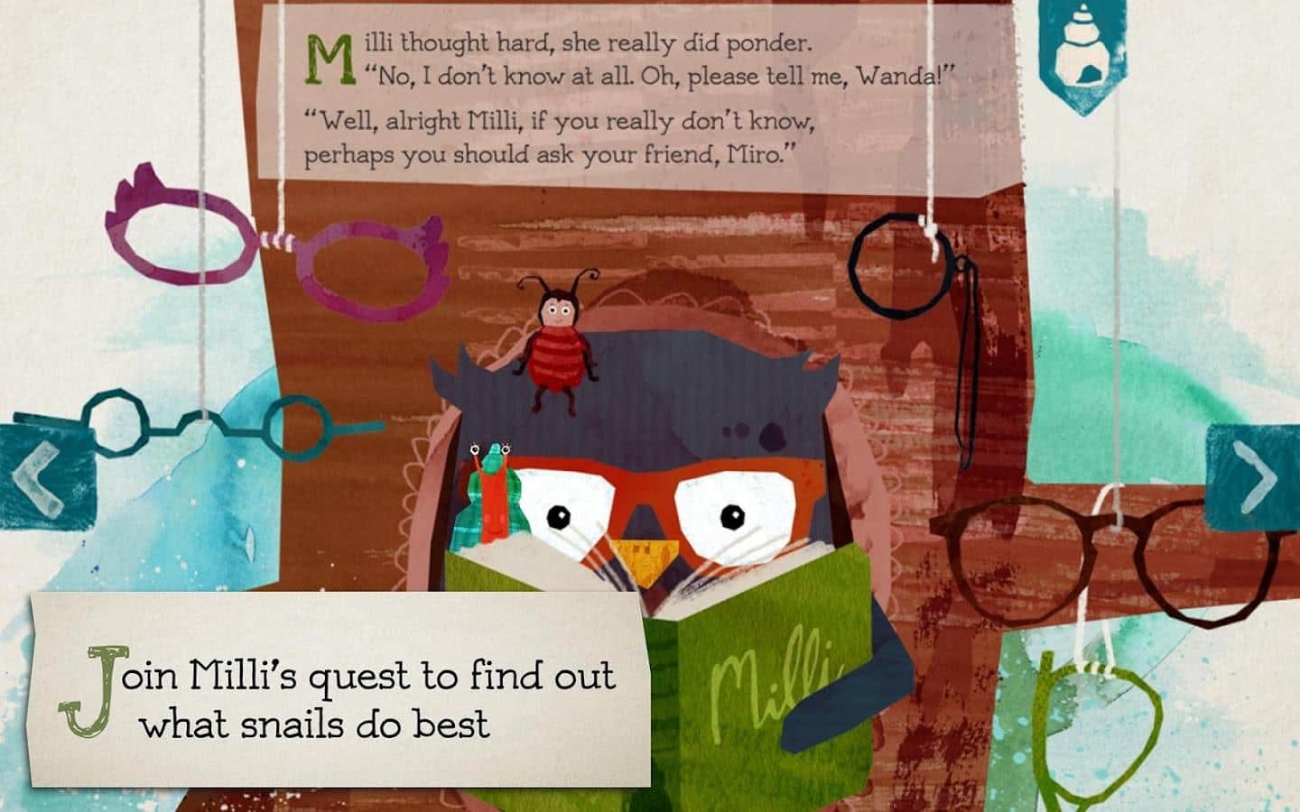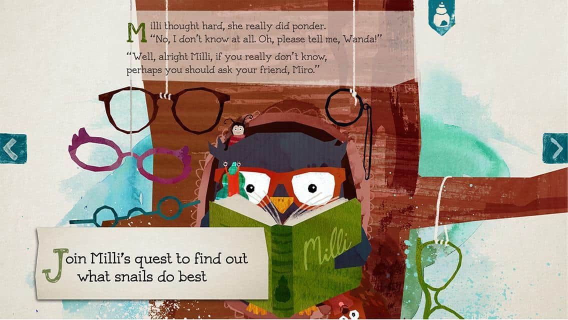 Milli the small snail – интерактивная сказочная история про приключения маленькой улитки и её друзей. Улитка отправляется в путешествие, по дороге встречая всё новых и новых друзей и посещая новые неизведанные ей ранее места. Встерчаем жуков, сову, хамелеона и другую живность. Читайте маленькие и большие истории и всё это в красочном интересном оформлении.