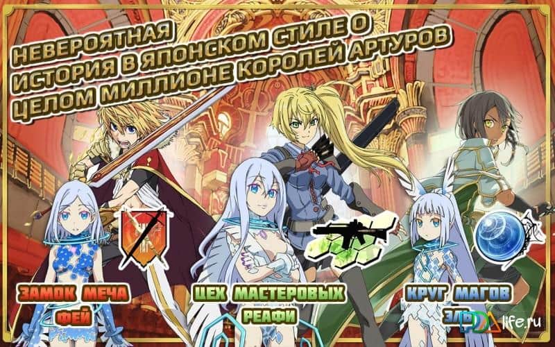 Легенда о короле Артуре это наверно одна из самых знаменитых историй по всему миру, ну кто не слышал об этом легендарном персонаже и о мече в камне. По мотивам этой легенды было снято множество кинофильмов, мультипликационных фильмов, поставлено театральных представлений, ну и конечно же игровая индустрия не могла оставить без внимания столь благодатную почву. Million Arthur - новая ролевая игра от студии GAMEVIL в основе сюжета которой как раз и лежит история об Артуре. В целом геймплей выполнен в классическом стиле принятым в азиатских ролевках, продуманные диалоги, динамичные схватки, взаимодействия между персонажами, улучшения и развитие, графическое исполнение. В целом Million Arthur достаточно качественный проект, единственное что можно отнести к незначительным недостаткам это то что игра занимает достаточно много места на вашем устройстве, а при первом запуске вам будет необходимо докачать дополнительные данные в размере 950 Мб.