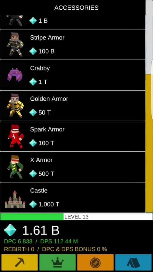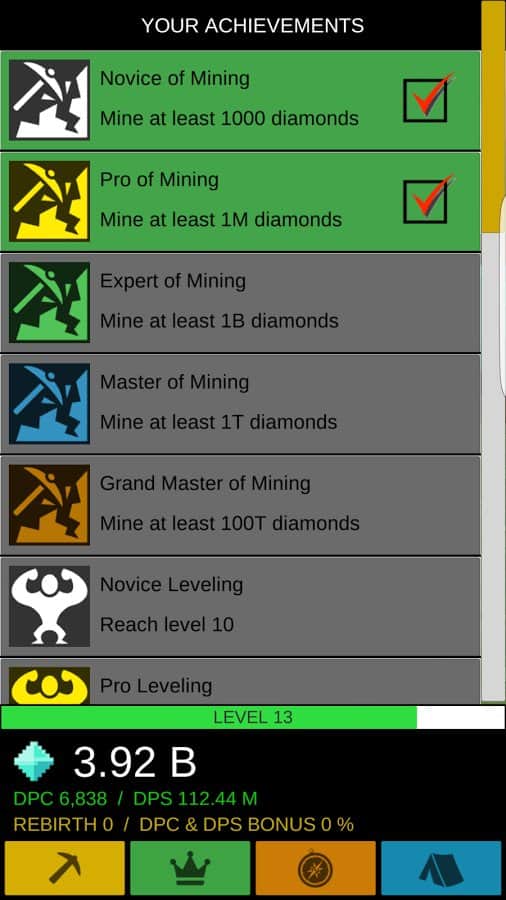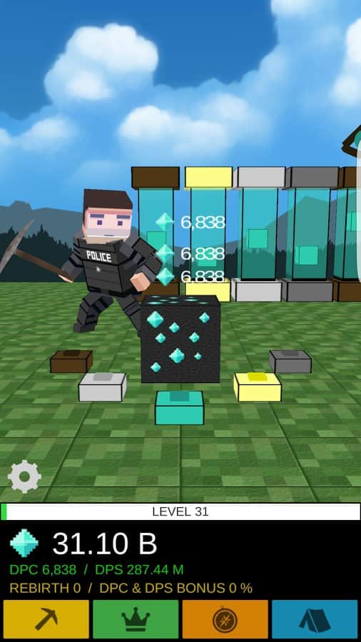 Mine Click – кликер на андроид, где вы будете управлять отважным золотоискателем. В этой игре вашей главной задачей будет нажимать на экран своего телефона или планшета как можно чаще, чтобы герой наносил удары киркой по огромному камню, внутри которого спрятаны драгоценные камни. Давите на экран как можно чаще и с огромной скоростью, чтобы добыть как можно больше золота, драгоценных камней и алмазов. Чем больше у вас будет драгоценностей, чем большие возможности перед вами откроются, такие как покупка нового оборудования, для облегчения работы, приобретение костюмов для героя и питомцев, чтобы ему не было скучно. Игра порадует вас простым управлением, многочисленными достижениями и забавными питомцами.
